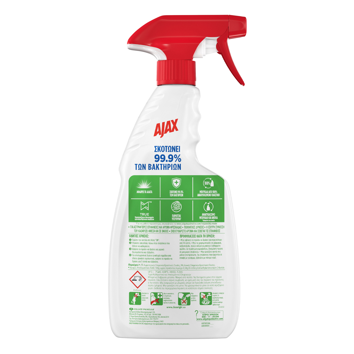 Ajax Expert Cleaner Spray removes bath salts leaving surfaces shiny and fresh smelling. This bathroom cleaner spray kills 99.9% of bacteria. Bottle made of 100% recycled plastic. Recyclable bottle and pump.