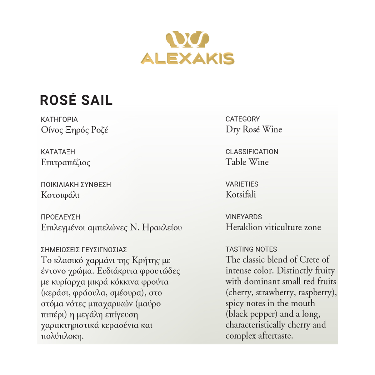 The classic Cretan blend with intense colour. Distinctly fruity with predominantly small red fruits (cherry, strawberry, raspberry), in the mouth notes of spices (black pepper), the long aftertaste is characteristically cherry and complex.