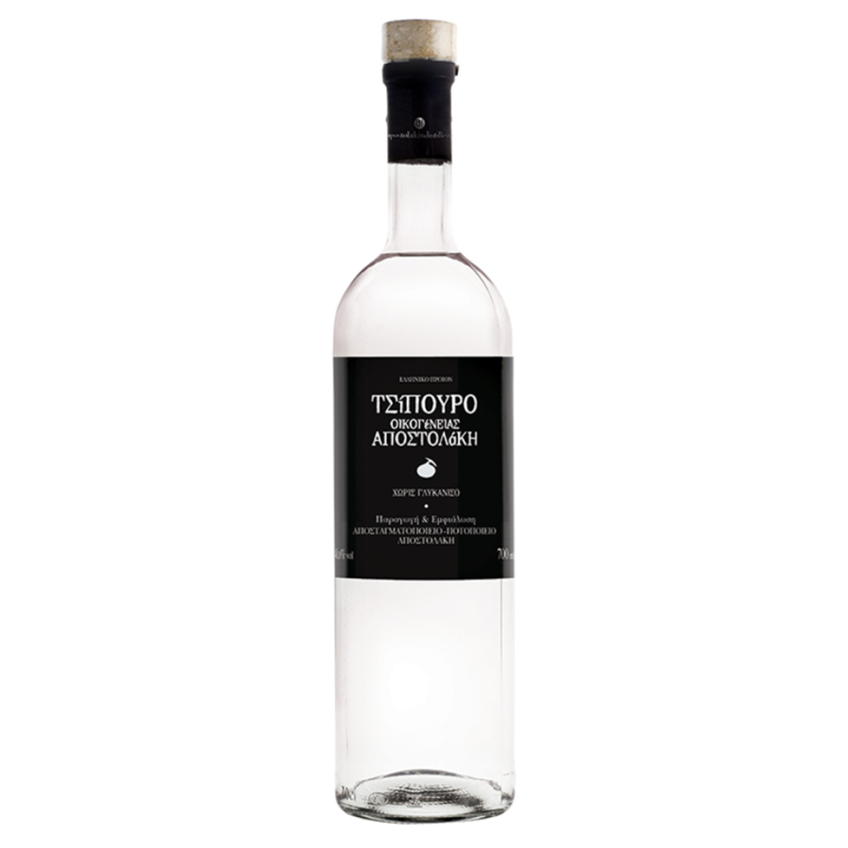 The Tsipouro of the Apostolakis Family is distilled exclusively from Moschato grapes. It is characterized by its light taste and rich aroma.