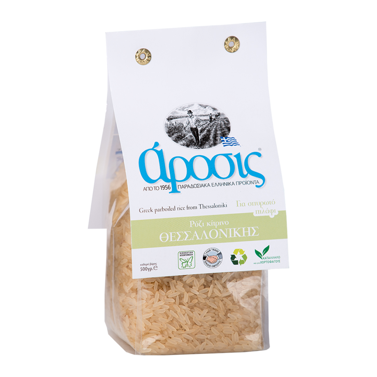 Since the 16th century and at almost zero altitude, the farmers of Thessaloniki have been cultivating rice in the delta of the rivers Aliakmonas, Axios and Loudias, in the plain of Thessaloniki and in the coastal areas. Every year the indica variety is grown in alluvial fields, usually flooded with water, in brackish, clayey soils, under a warm climate with high relative humidity. The farms have a high water storage capacity and a pH of 6-6,5. Water for irrigation is drawn from the Aliakmonas, Axios, Loudias and Gallikos rivers. The relatively high levels of sunshine, particularly in September and October, favour good nutrition of the grains, which is important for their quality and nutritional value. The yellow rice (bonette) comes from the long-grain variety and, after processing (wet heat treatment), acquires its characteristic yellow colour.
