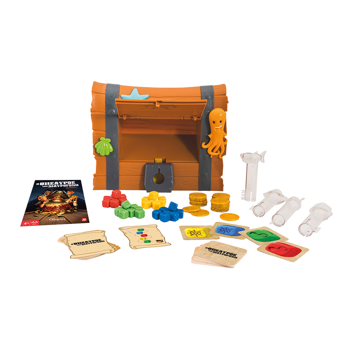 "Blackbeard's treasure is in the spotlight as the players try to unlock the chest! Match the cards and collect the dice in this fun and subversive game! The first player to collect them will put the key in the treasure chest and unlock it, revealing the gold coins!
