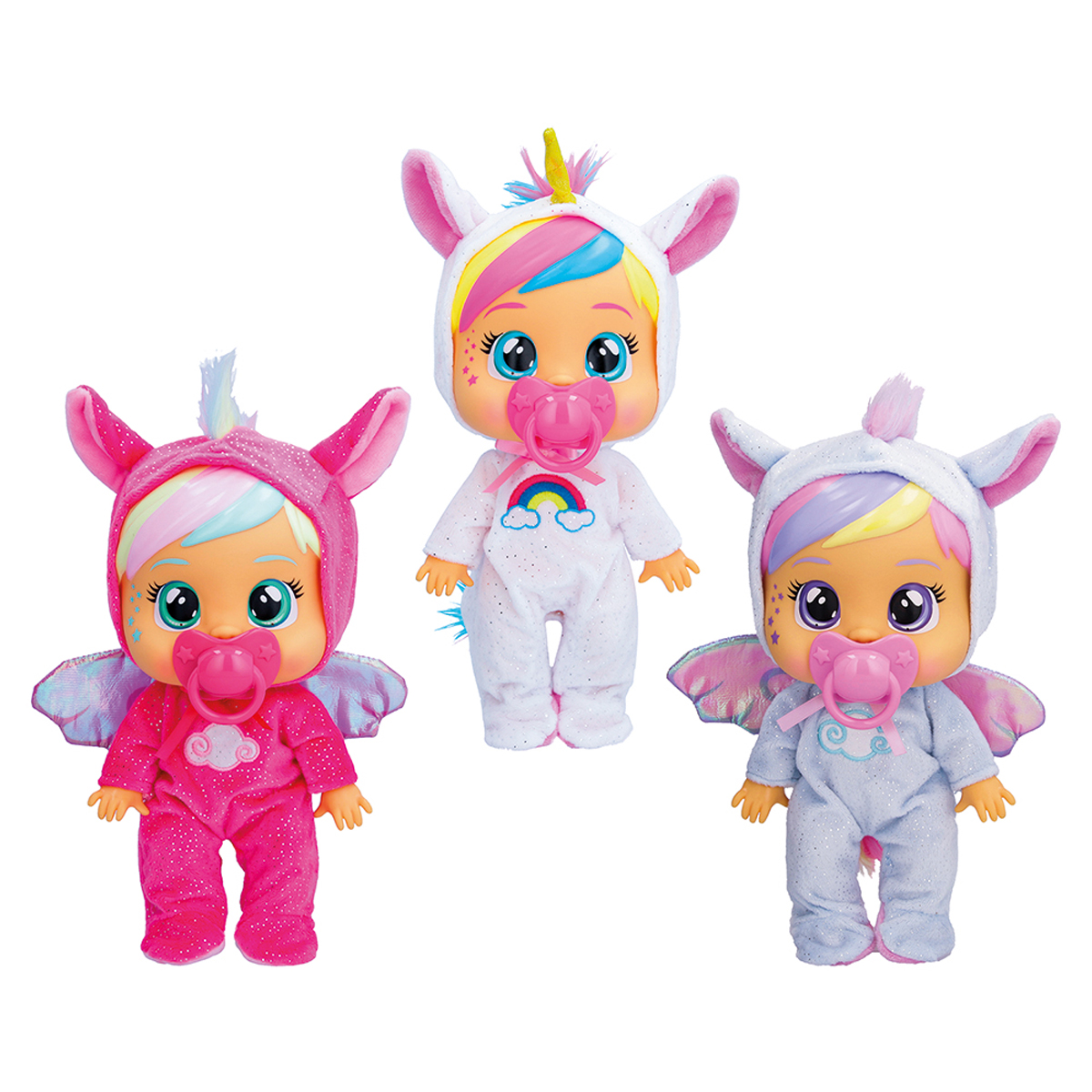 Νέα Κλαψουλίνια Αγαπουλίνια! Κλαίνε με αληθινά δάκρυα όταν τις πιέσεις στο κεφαλάκι. Η κάθε μία έχει τα δικά της προσωπικά αξεσουάρ για την φροντίσετε όπως ένα μωράκι! Αλλάξτε την πάνα της Dreamy, βάλτε την Jenna στο γιογιό, και δώστε την Hannah να φάει κρεμούλα.