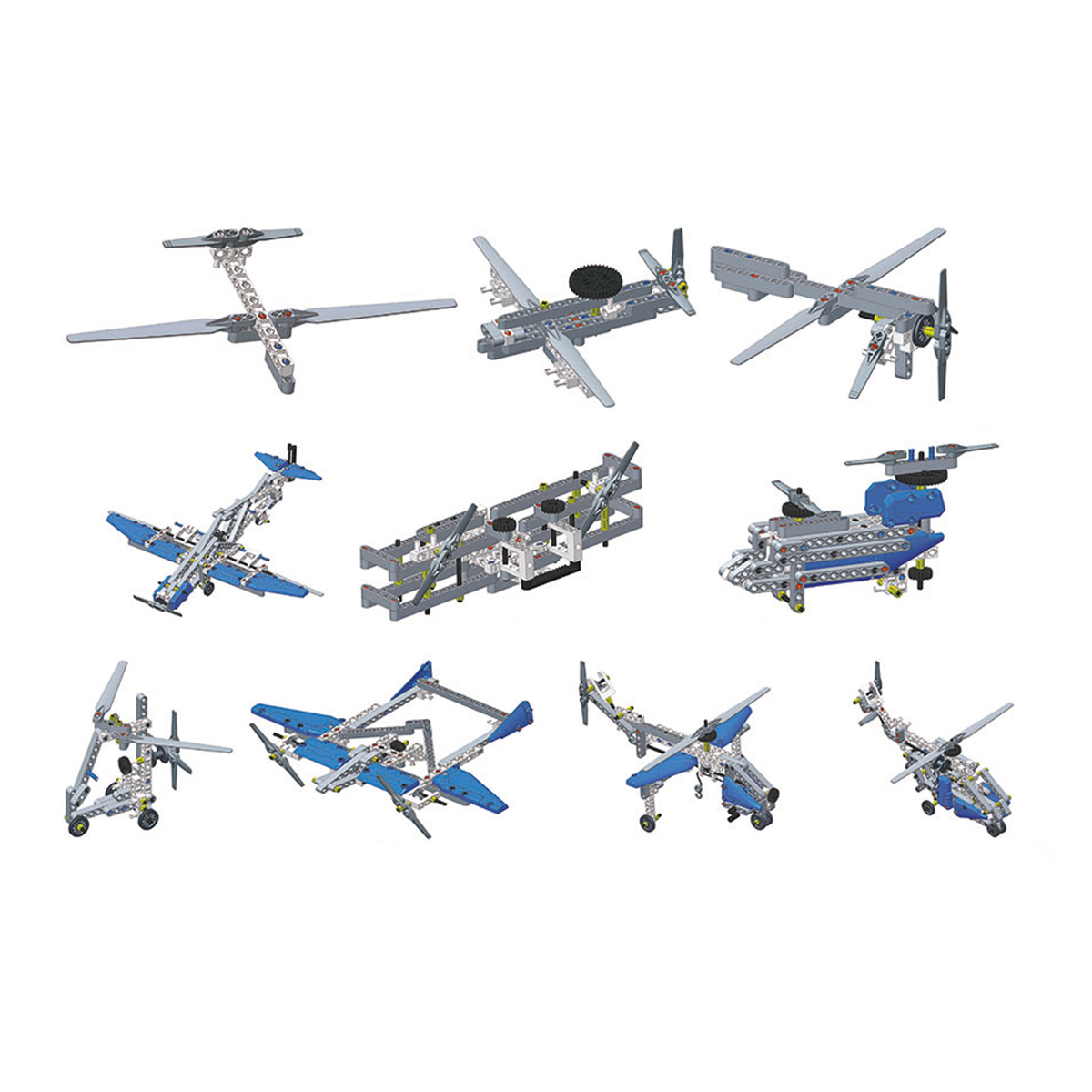 A science kit that will make you live incredible adventures in the Learn and Create Airplanes and Helicopters Engineering Lab. A fantastic set to discover the science of aeronautics and the fundamental principles of aerodynamics through the construction of realistic models of planes and helicopters. Includes over 200 parts to assemble parts such as fuselage, panels, propellers, gears, pulleys and more. Follow the instructions in the illustrated manual, full of step-by-step instructions for model assembly and flight mechanics, or download the free app with interactive 3D instructions for all models. You will find 4 models to assemble according to the instruction manual or the app and 6 models to assemble according to the app.Made in ItalyThe app is compatible with Android TM - Apple and Amazon The Learn and Build series promotes STEM (Science-Science, Technology-Technology, Engineering-Mechanics, Mathematics-Mathematics) subjects to develop and encourage children's knowledge in these areas. By conducting experiments, children improve their skills and are introduced to the world of science and technology.The toys in the Learn and Create series are leading the science toy category, providing a wealth of equipment, detailed information and instructions for conducting impressive safe experiments and constructions, giving children the opportunity to learn about science. It is an innovative range of toys in which children will have fun doing experiments, using scientific tools, discovering physics, chemistry, astronomy, biology, botany, as well as the main scientific and natural phenomena.