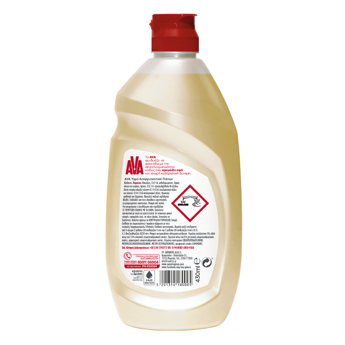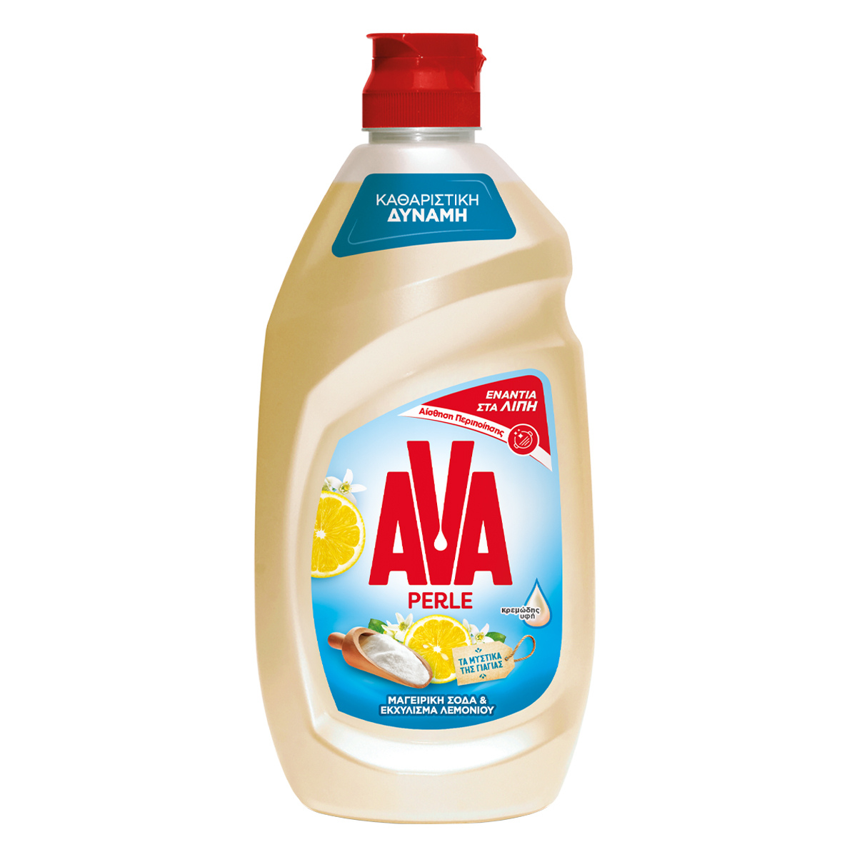 AVA Perle liquid dishwashing detergent with a creamy texture is enriched with baking soda and lemon extract. Thanks to its highly effective formula, it acts against grease leaving your dishes sparkling clean. It rinses easily without leaving any residue, using less water and saving valuable time.