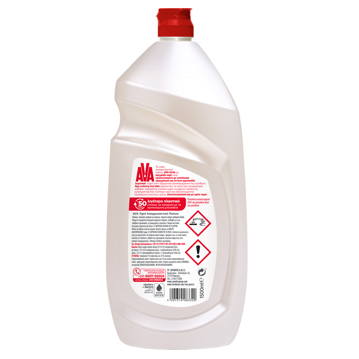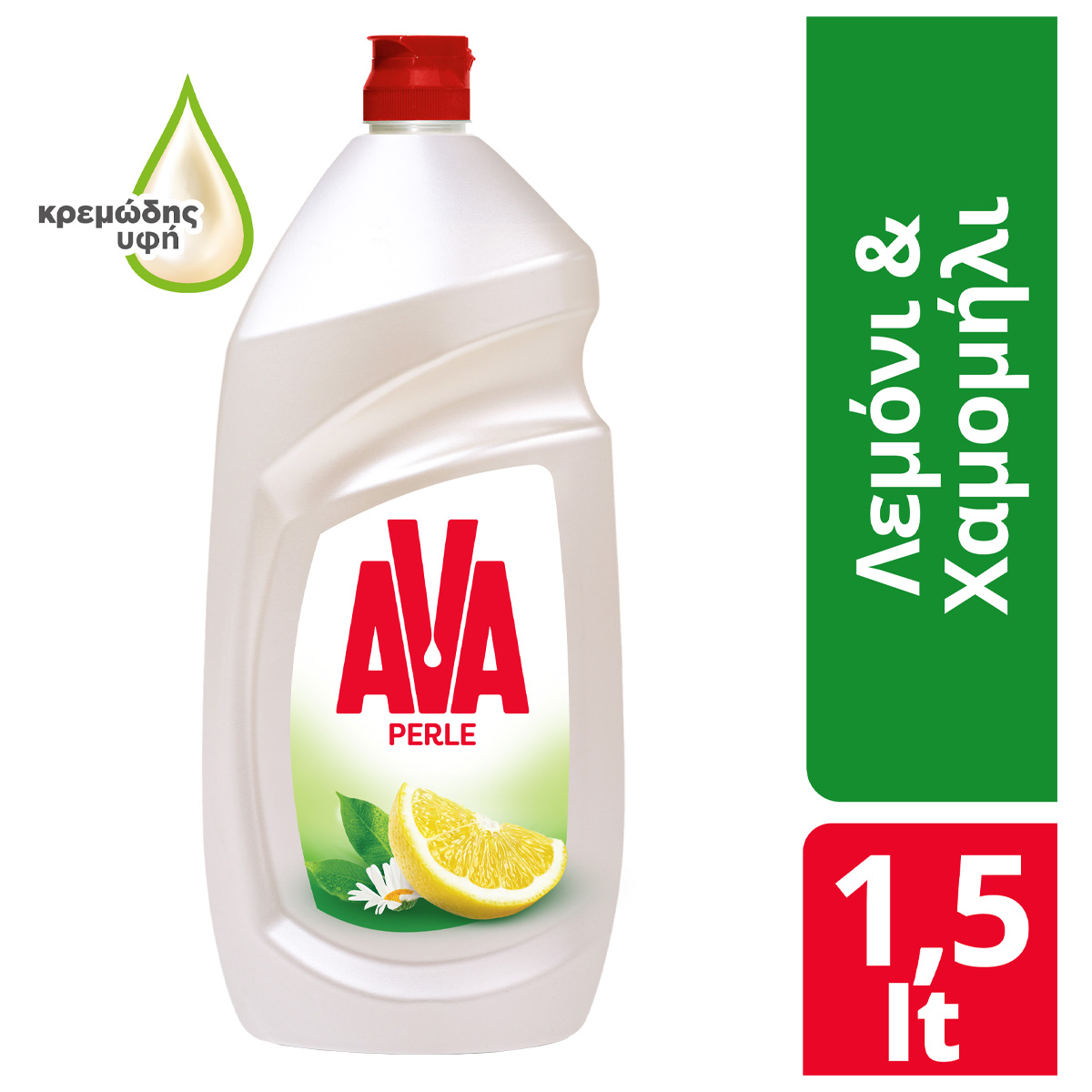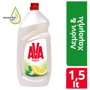AVA PERLE dishwashing liquid with lemon and chamomile extract, has a wonderful aroma and creamy texture offering a sense of care. Thanks to its composition it is effective even in cold water, saving energy and time. 1500ml - Effective even in cold water - Wonderful fresh scent - Creamy texture - Creamy texture - Feeling of care - Highly effective composition AVA, Pure Care!