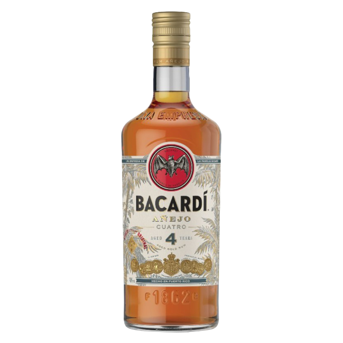 Bacardi Anejo Cuatro is a 4 year old rum and a brand new addition to the line-up and sits between the Carta Oro rum, which is mainly for blending, and the 8 year old, which is enjoyed straight up as a shot. The result is effortlessly smooth and spicy.