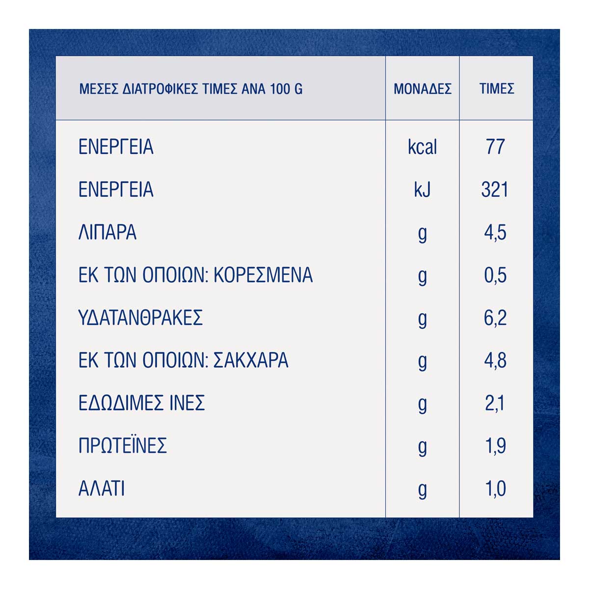 * DISCLAIMER: Chalkiadakis SA, always respecting its consumers, strives to provide reliable information on its website, based on the data it receives from its suppliers. However, Chalkiadakis SA informs that there may be discrepancies between the information provided and that on product labels, for technical reasons that may be due to stock updates. The information presented on the website does not in any way replace the information on the product labels, and in case of any discrepancy, the information on the product labels always prevails. Consumers must check the information on the labels before purchasing and before consuming the product and always consume it according to the intended use defined by the supplier. In case of disagreement, the consumer expressly waives any right of appeal against Chalkiadakis SA.