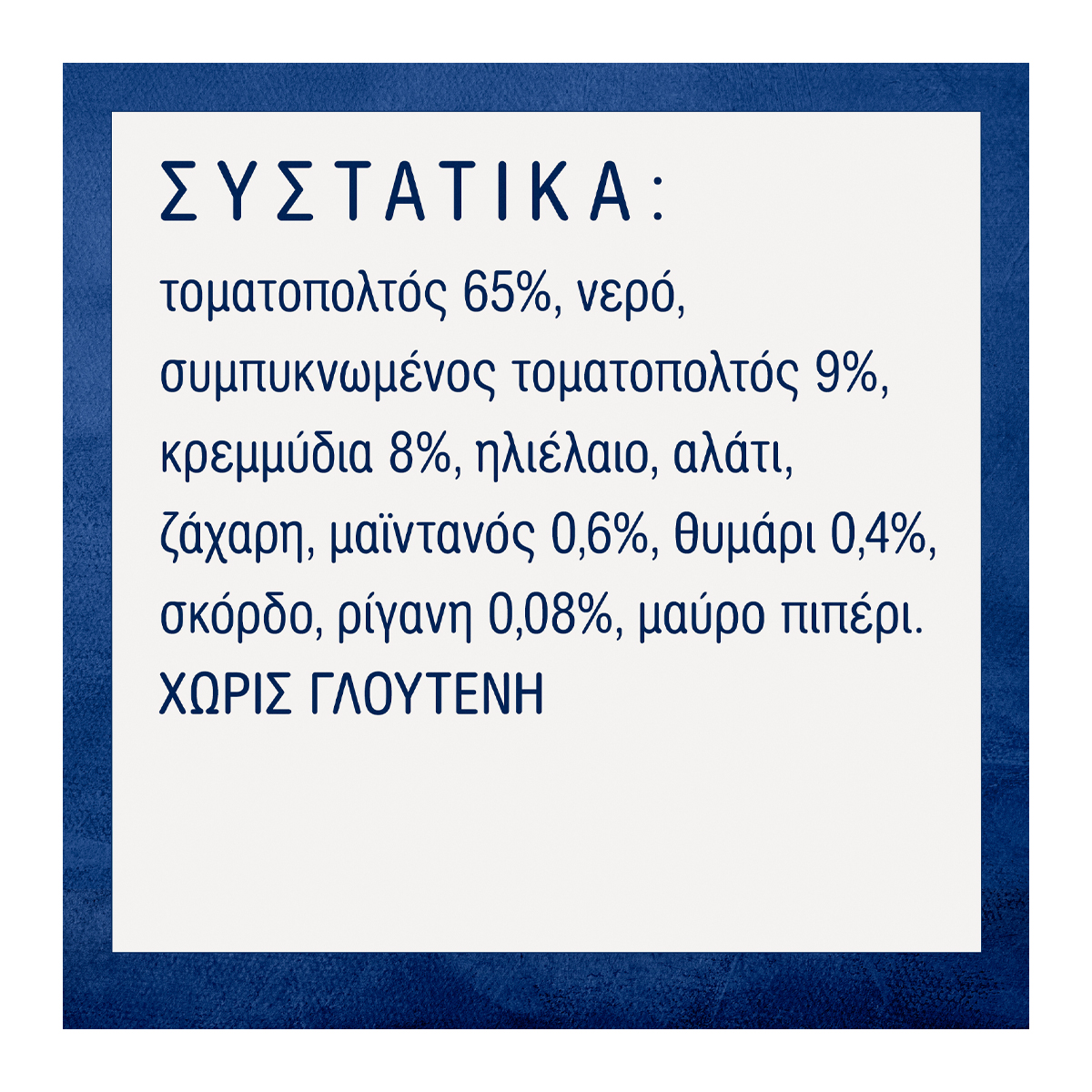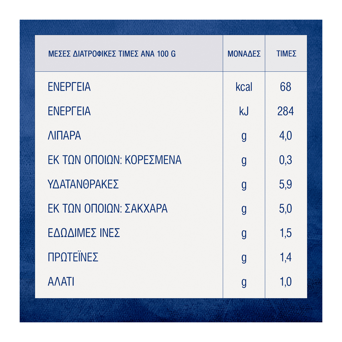 * DISCLAIMER: Chalkiadakis SA, always respecting its consumers, strives to provide reliable information on its website, based on the data it receives from its suppliers. However, Chalkiadakis SA informs that there may be discrepancies between the information provided and that on product labels, for technical reasons that may be due to stock updates. The information presented on the website does not in any way replace the information on the product labels, and in case of any discrepancy, the information on the product labels always prevails. Consumers must check the information on the labels before purchasing and before consuming the product and always consume it according to the intended use defined by the supplier. In case of disagreement, the consumer expressly waives any right of appeal against Chalkiadakis SA.