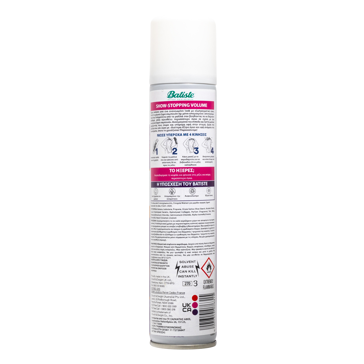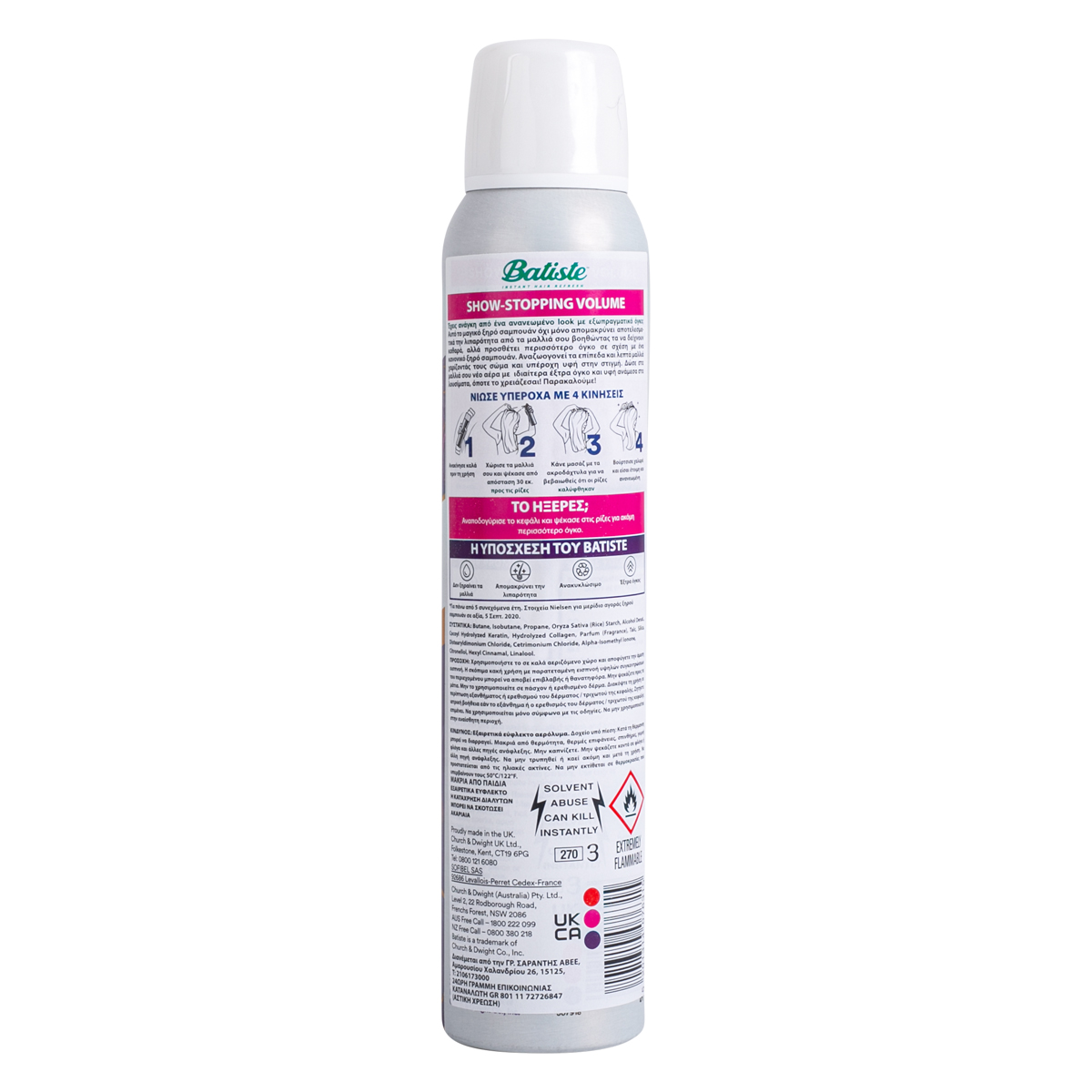 Batiste Dry Shampoo Heavenly Volume eliminates grease from the roots, giving freshness and vitality to dull, limp hair, all without a drop of water. In no time it gives your hair volume and soft texture, leaving it feeling clean and fresh, without having to stress anymore if you skip a regular shampoo. Batiste Heavenly Volume gives your hair extra volume & a luscious look!
