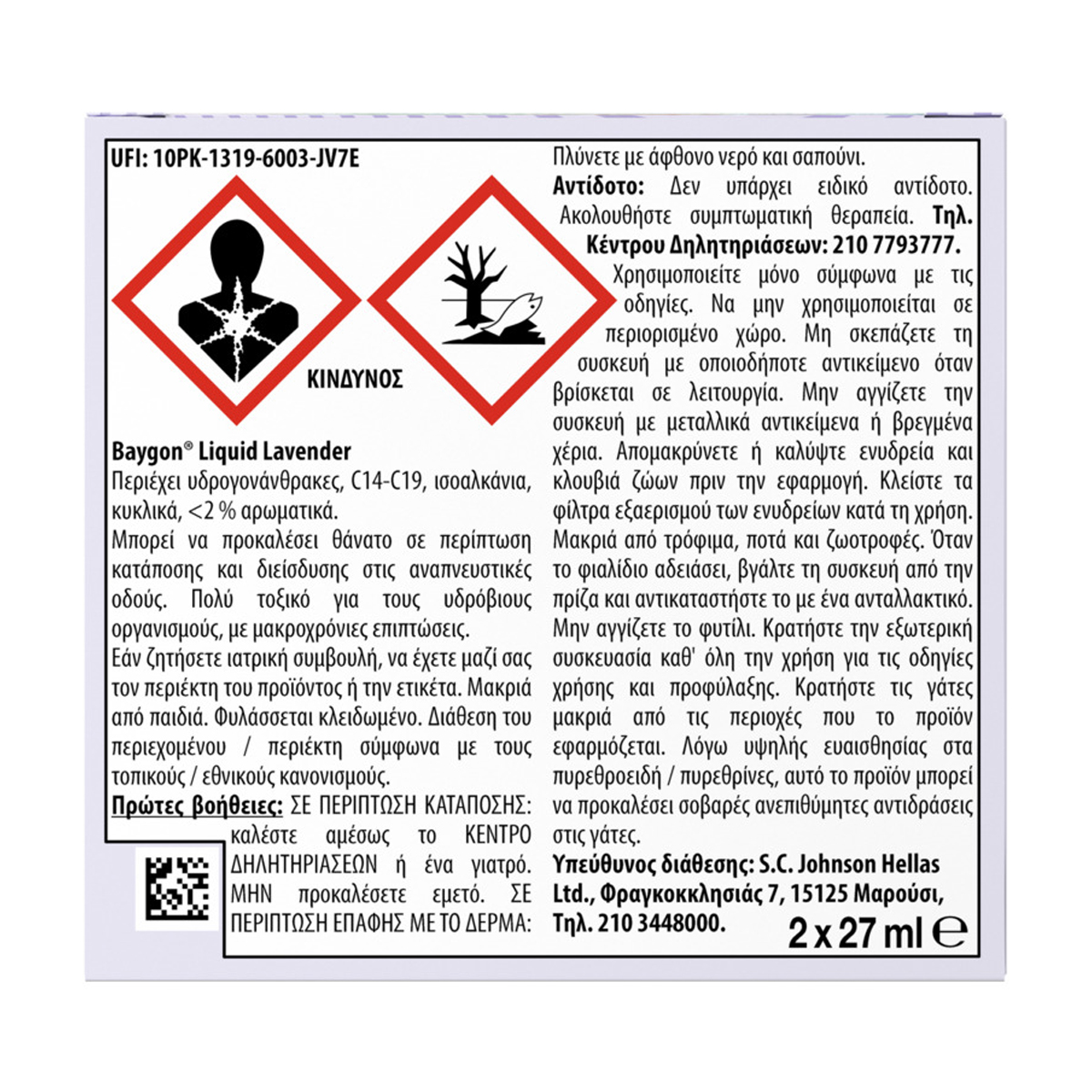 Baygon Insect Repellent Liquid Lavender Anti-Insect 2 x 27 ml