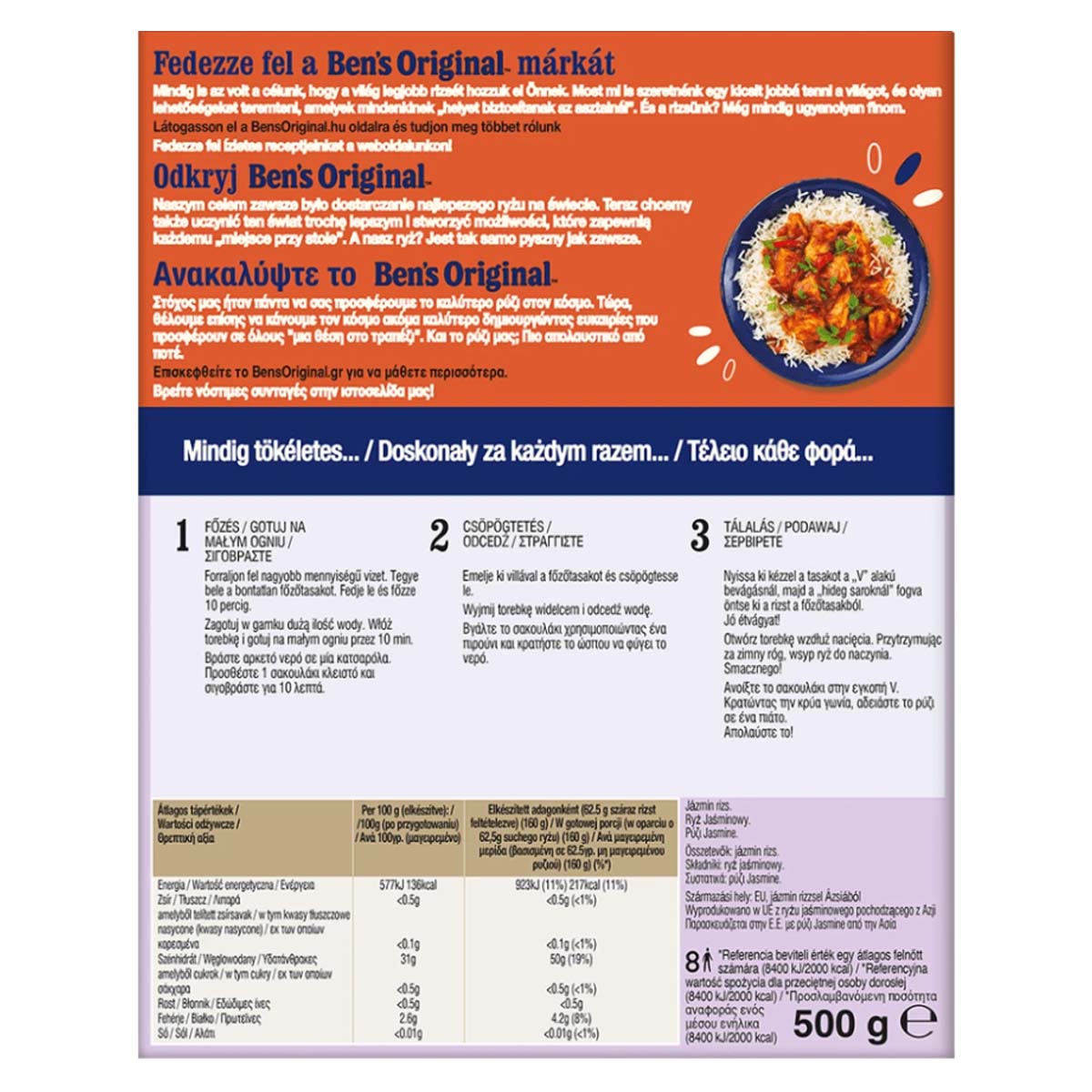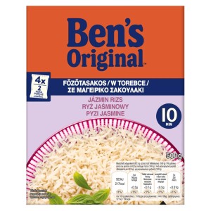 BEN'S ORIGINAL™ 10-minute Jasmine Rice in a cooking bag for perfect rice, without measuring and draining. Quick and easy guarantees perfect taste and appearance in just 10 minutes. Thanks to the parboiling treatment it is always kept pimply. Suitable for vegetarians. This package contains only carefully selected, high-quality rice. Ideal as an accompaniment to meat, chicken and shrimps.