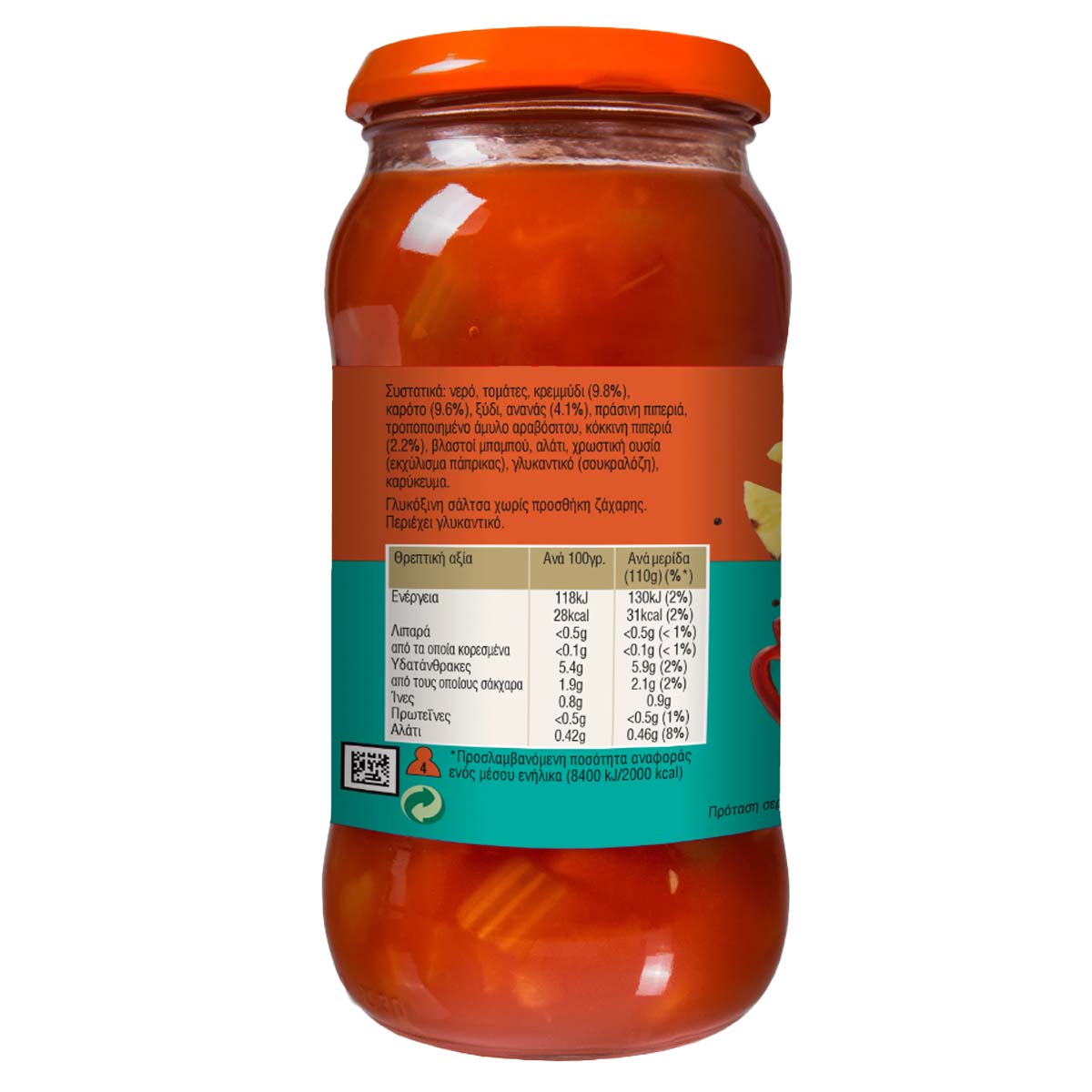 Sweet and sour sauce without added sugar BEN'S ORIGINAL™. Great taste, no artificial colours or preservatives. Ideal with chicken, beef, shrimp and vegetables. Serve with 500g of cooked long grain or brown rice BEN'S ORIGINAL™. Suitable for vegetarians.