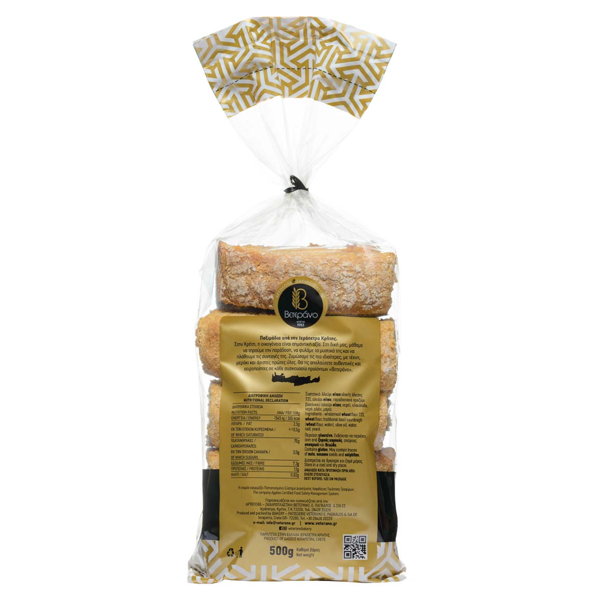 Βετεράνο Παξιμάδι Σταρένιο Ολικής Άλεσης 500 gr