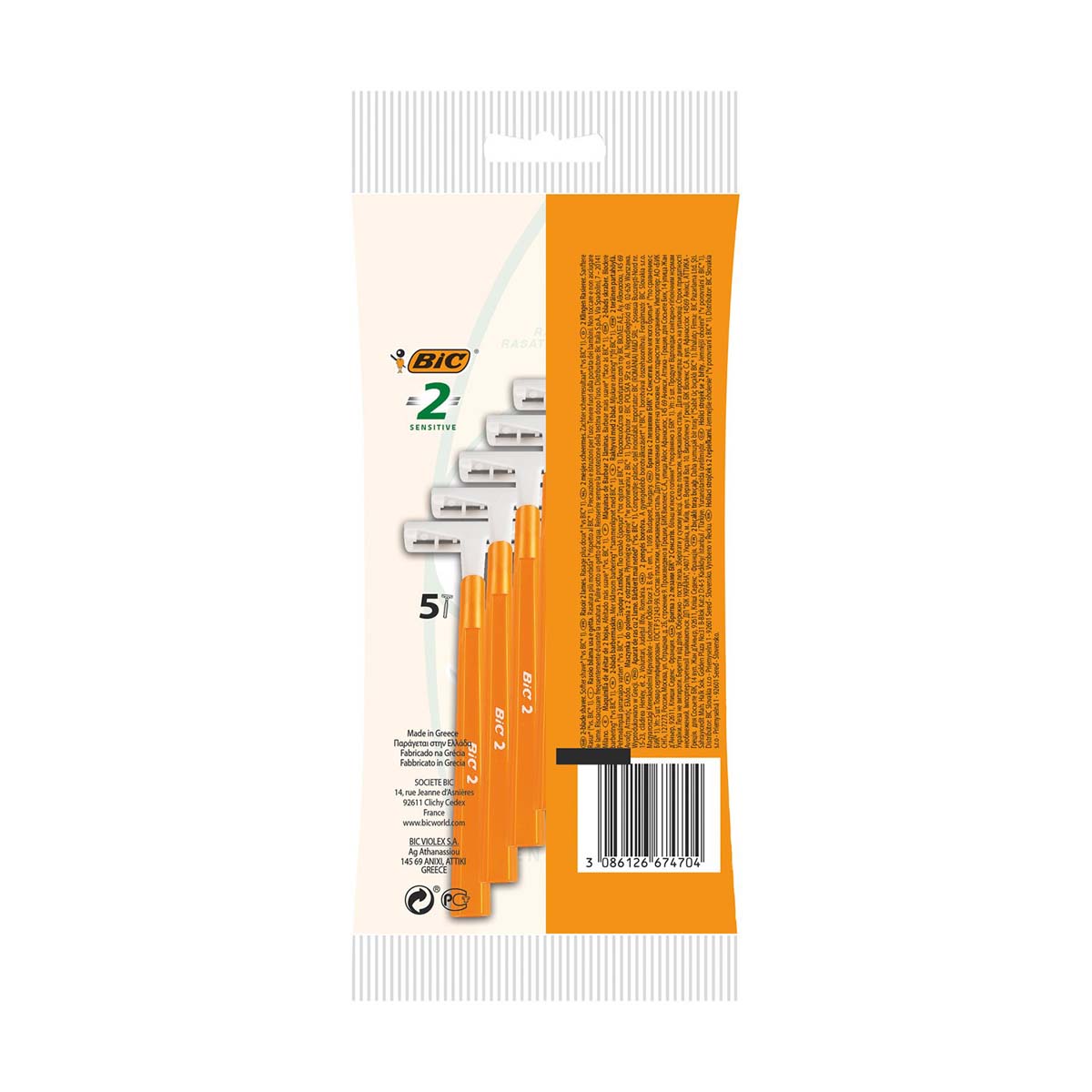 Enjoy a comfortable shave with the BIC 2 Sensitive disposable razor. It features two stainless steel blades with chrome and polymer coating for greater durability. The slim, stable head reaches into the hard-to-reach places, while the orange handle is designed for great precision in use. Fast, efficient and easy to carry.