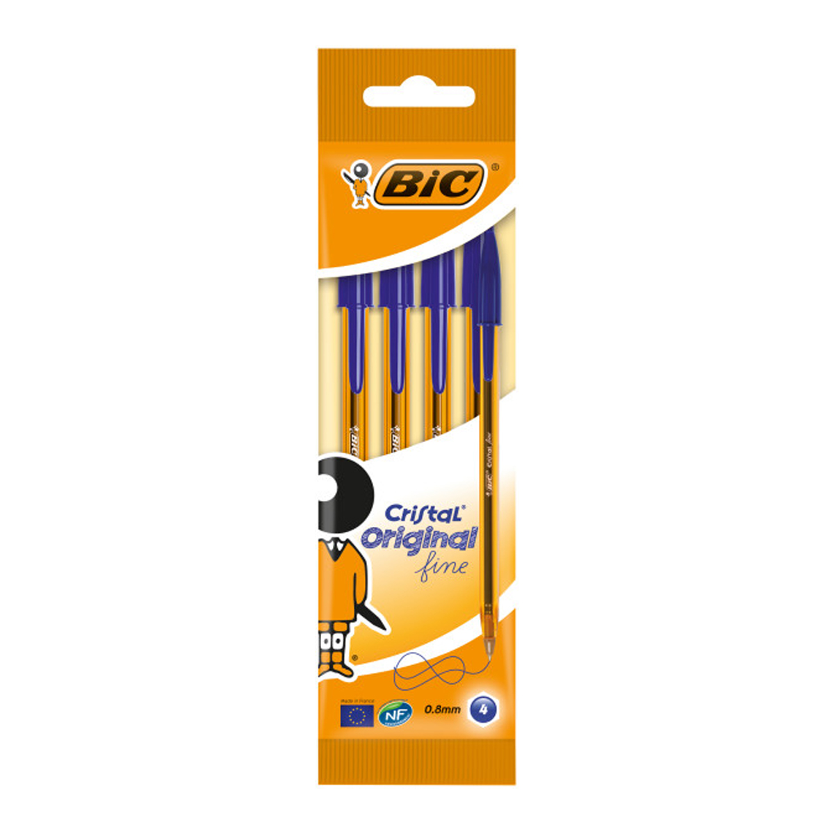 Bic Cristal Fine Fine Life Pen Fine Nib (0.8mm) - Blue 4 Pieces