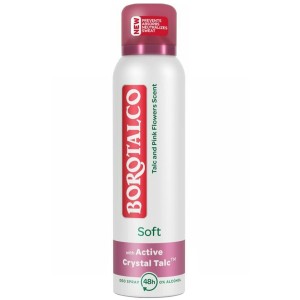 Embrace the Borotalco experience with Borotalco Soft deodorant that, thanks to the innovative Active Crystal Talc©, offers triple antiperspirant protection as: Prevents sweat by limiting its formation. It absorbs sweat as soon as it appears. Eliminates sweat by eliminating sweat.