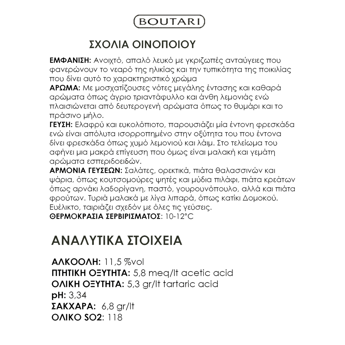 Moschofilero Boutari is the most famous and well-known white wine, and its name is now "synonymous" with the Moschofilero variety. It is a particularly aromatic wine, the best expression of the variety, which, with international distinctions, but above all with the preference of the consumer, has deservedly won international recognition.