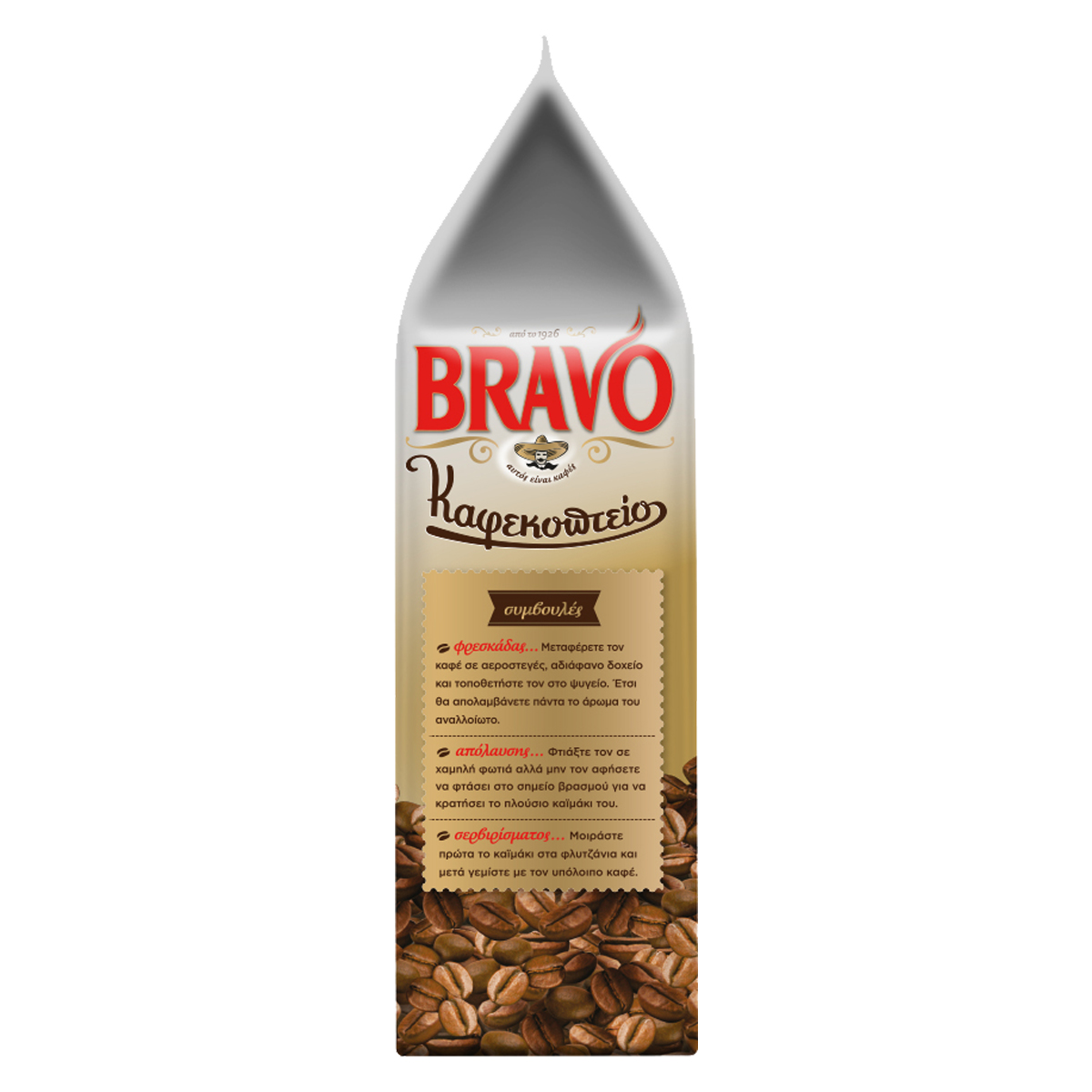 The BRAVO Coffee Roastery is made from a special blend with careful roasting, based on the knowledge of the first traditional BRAVO coffee roastery. A highly aromatic Greek coffee with a balanced taste and smooth kaimaki.