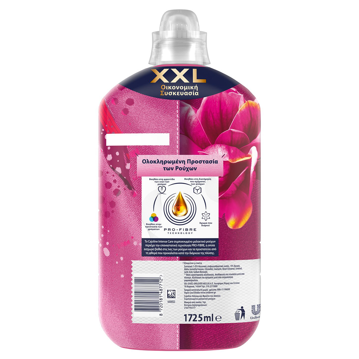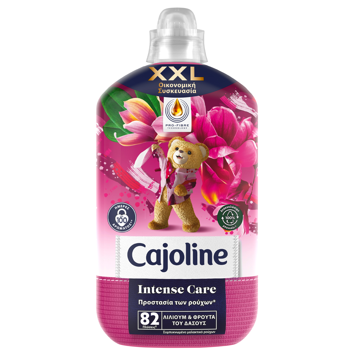 Cajoline Intense Care concentrated fabric softener, with a long-lasting fragrance, contains the revolutionary PRO-FIBRE technology, which penetrates deep into the fibres of the clothes and protects them from damage caused during washing. It offers complete protection and helps to: care for fibres, protect colours, maintain the shape of the clothes.