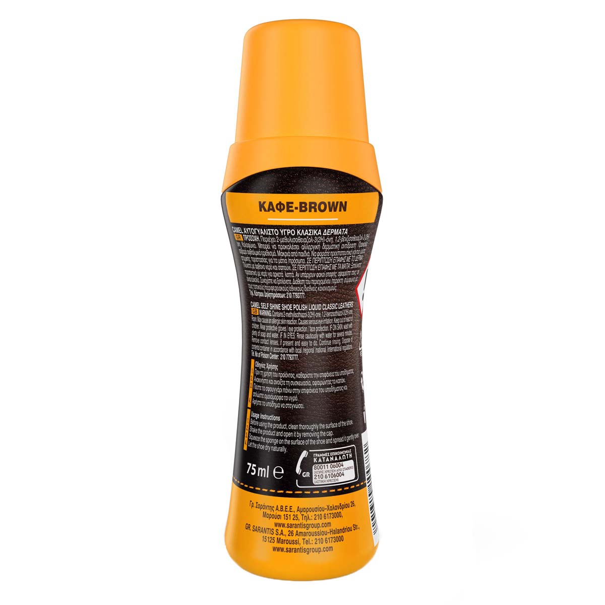 The self-polishing Camel Liquid for Brown classic skins, treats the skin thanks to the natural wax it contains. It gives intense shine and long-lasting colour.