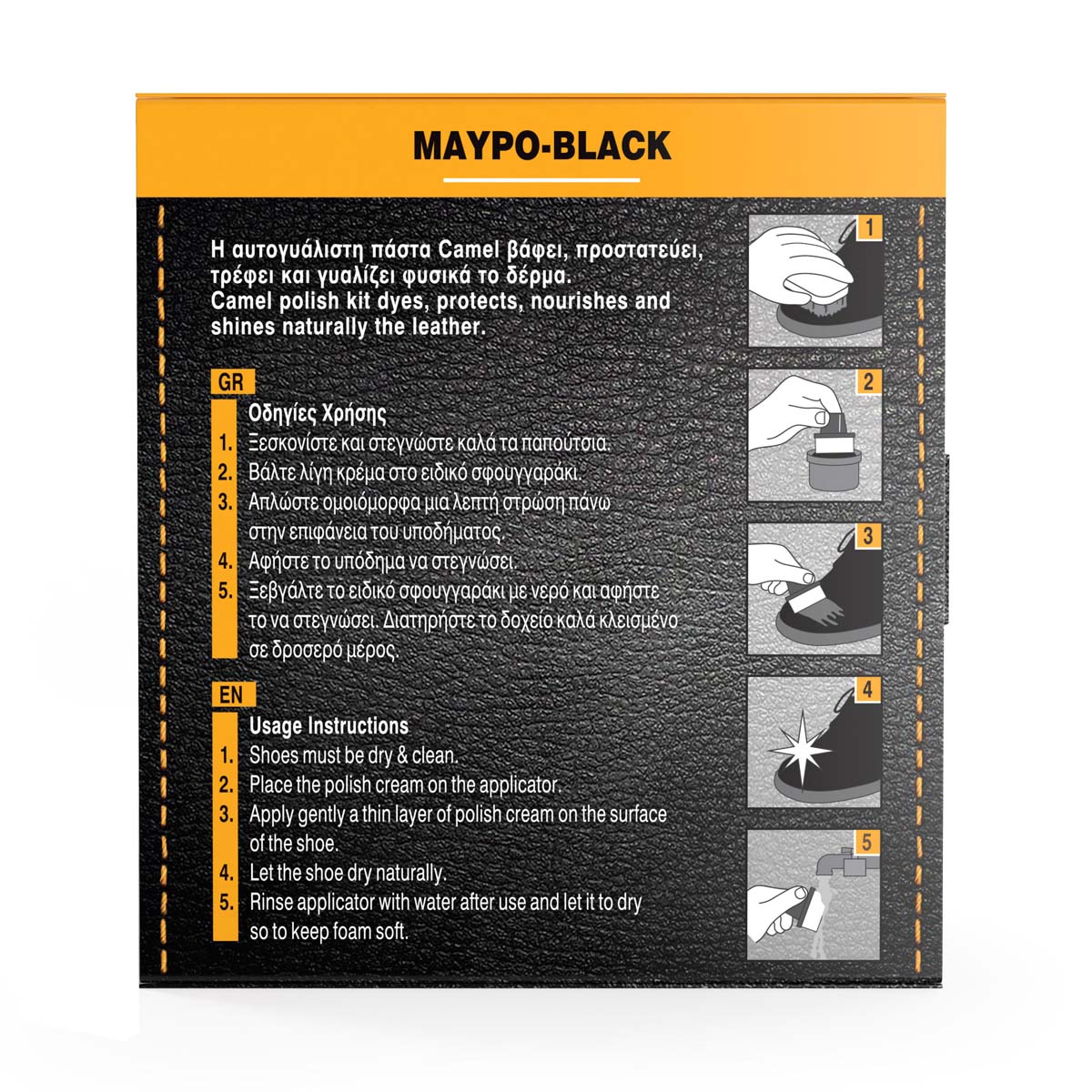 Camel Self-polishing paste for Black classic leathers, which naturally stains, protects, nourishes & polishes the skin.