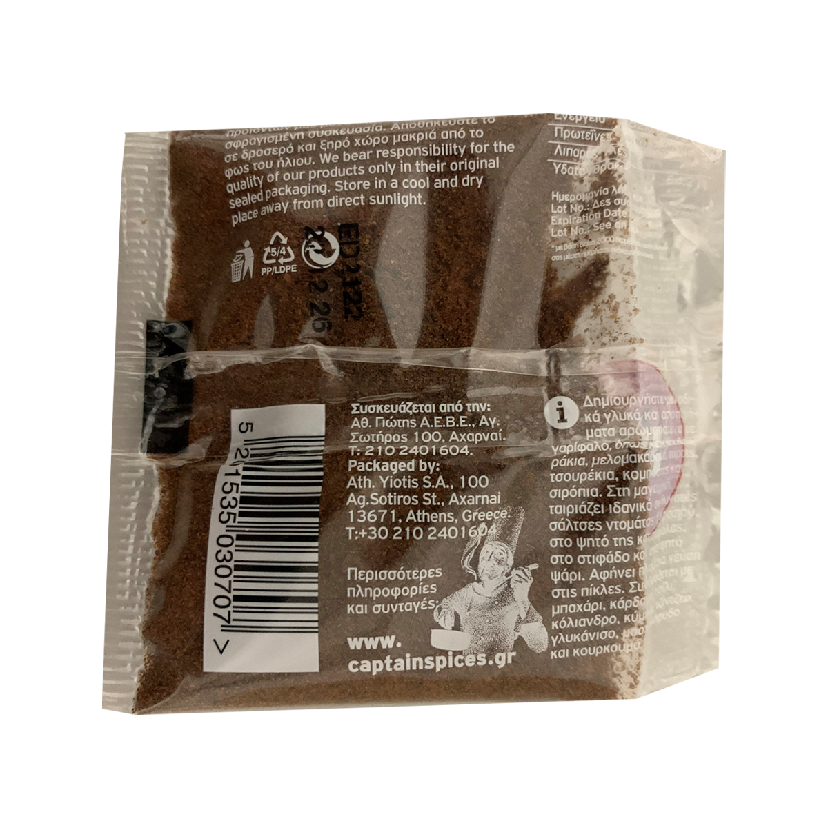 Packaged by: Ath. Yotis S.A., 100 Ag. Sotiros, Acharnai. Tel: +30 210 2401604 www.captainspices.gr