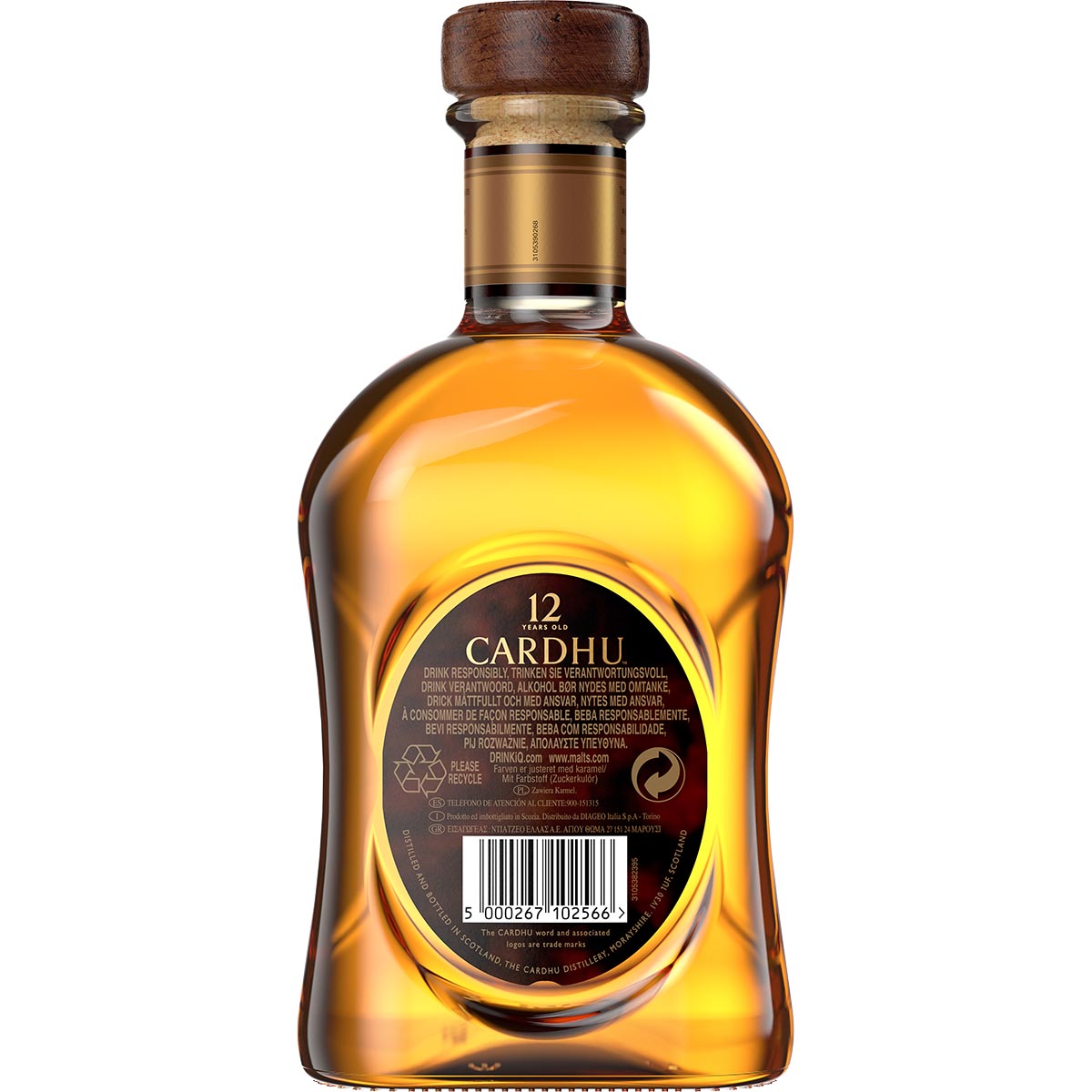 Cardhu is produced in one of Speyside's oldest distilleries which have been located for 200 years at the foot of the mountain near the River Spey. Enticing and silky smooth, the 12 year old release is the quintessential Cardhu with bright notes of golden honey and a refined, fruity character. On the palate, Cardhu 12 Year Old is perfectly balanced and velvety. It starts sweet and fresh, and finishes with a lingering, dry sweet tobacco aftertaste. The light character of the Cardhu 12 Year Old is perfect to start your journey into the world of whisky. The velvety, honeyed flavours of Cardhu 12 Year Old are best brought out when served neat or on the rocks.