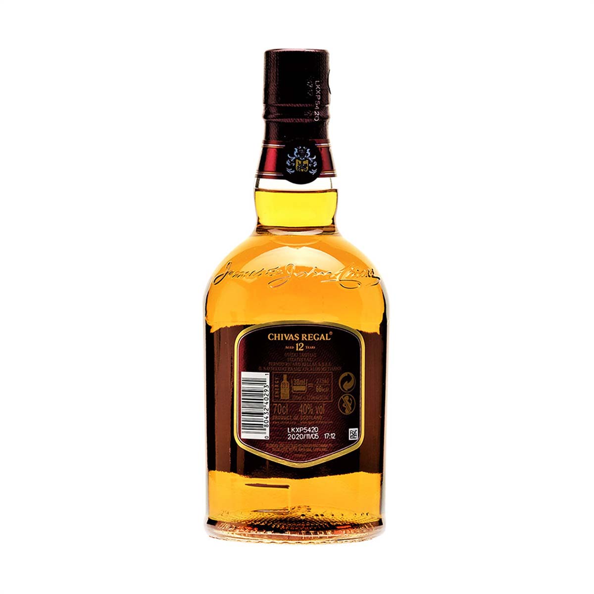 With a bright, warm, amber colour and a blend of wild herb and fruit aromas, Chivas Regal 12 Year Old is popular for its creamy taste, rich with notes of vanilla, hazelnut, ripe apples and honey.