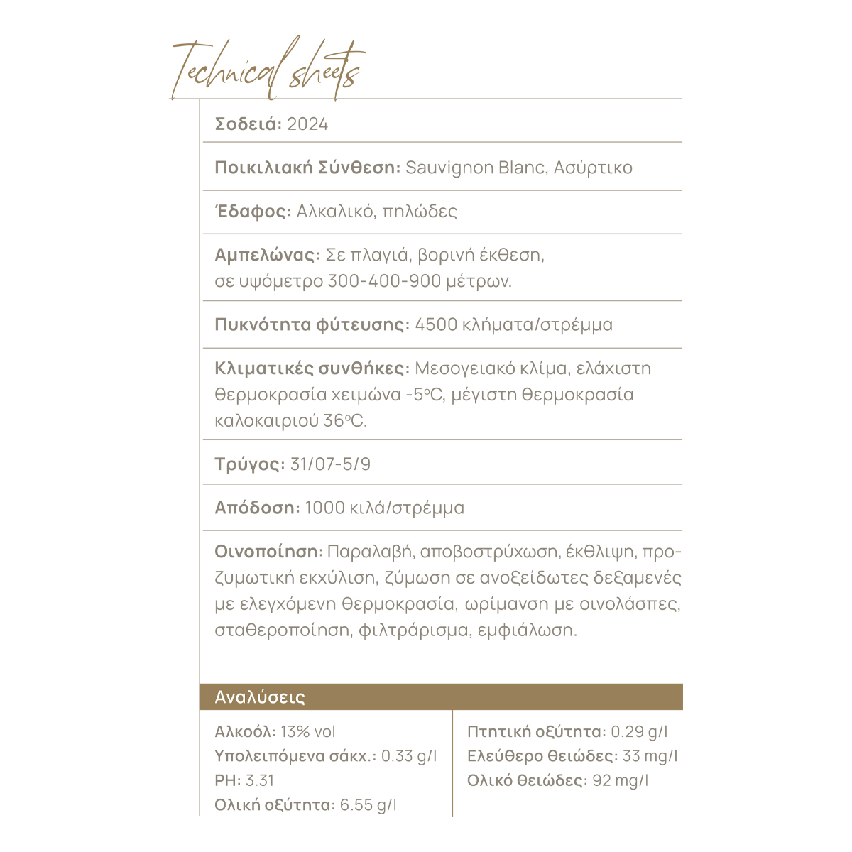 Variety: sauvignon blanc 85% & Assyrtiko 15%.
