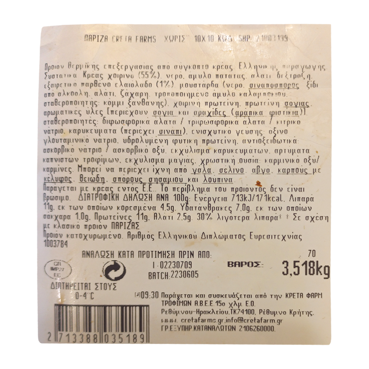 Creta Farms S.A. 23rd km of National Road Athens - Lamia P.O. Box 14568 / Krioneri Attica, Consumer Line: 210 6260000, 210 6221200.