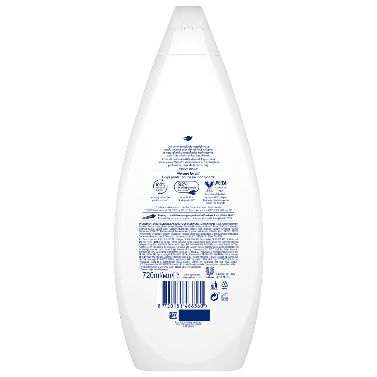 If you are looking for a shower gel that is gentle and cares for your skin, it's time to try the Dove Fruity Nourish shower gel. With gentle cleansing agents, the nourishing Dove Fruity Nourish shower gel cleanses and nourishes your skin, leaving it soft and smooth in just one shower.