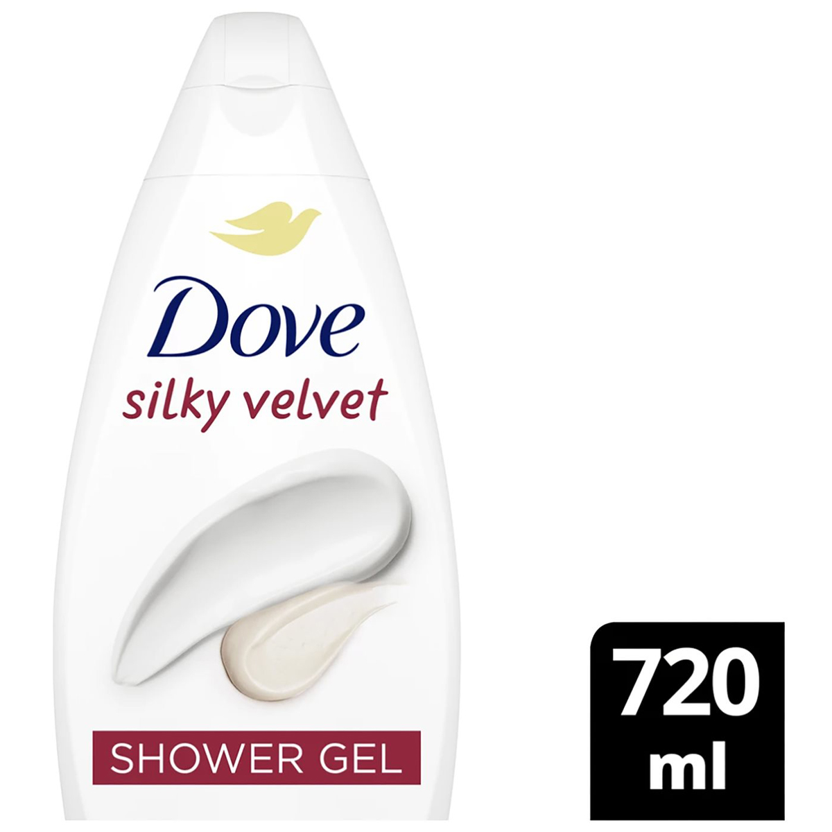 Dove Silky Velvet Shower Gel. Mild and moisturizing shower gel cleanses and nourishes the skin, leaving it softer and smoother in just one shower.
