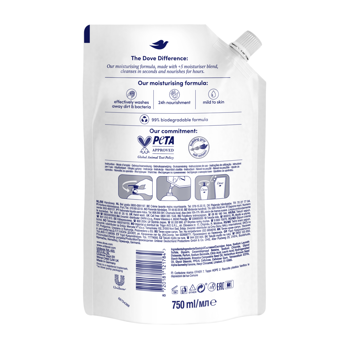 Dove Liquid Cream Soap Silk helps to remove germs, while its new formula includes +5 moisturizing agents , glycerin and vegetable oils that nourish and care for the skin, protecting it from dryness after frequent hand washing.