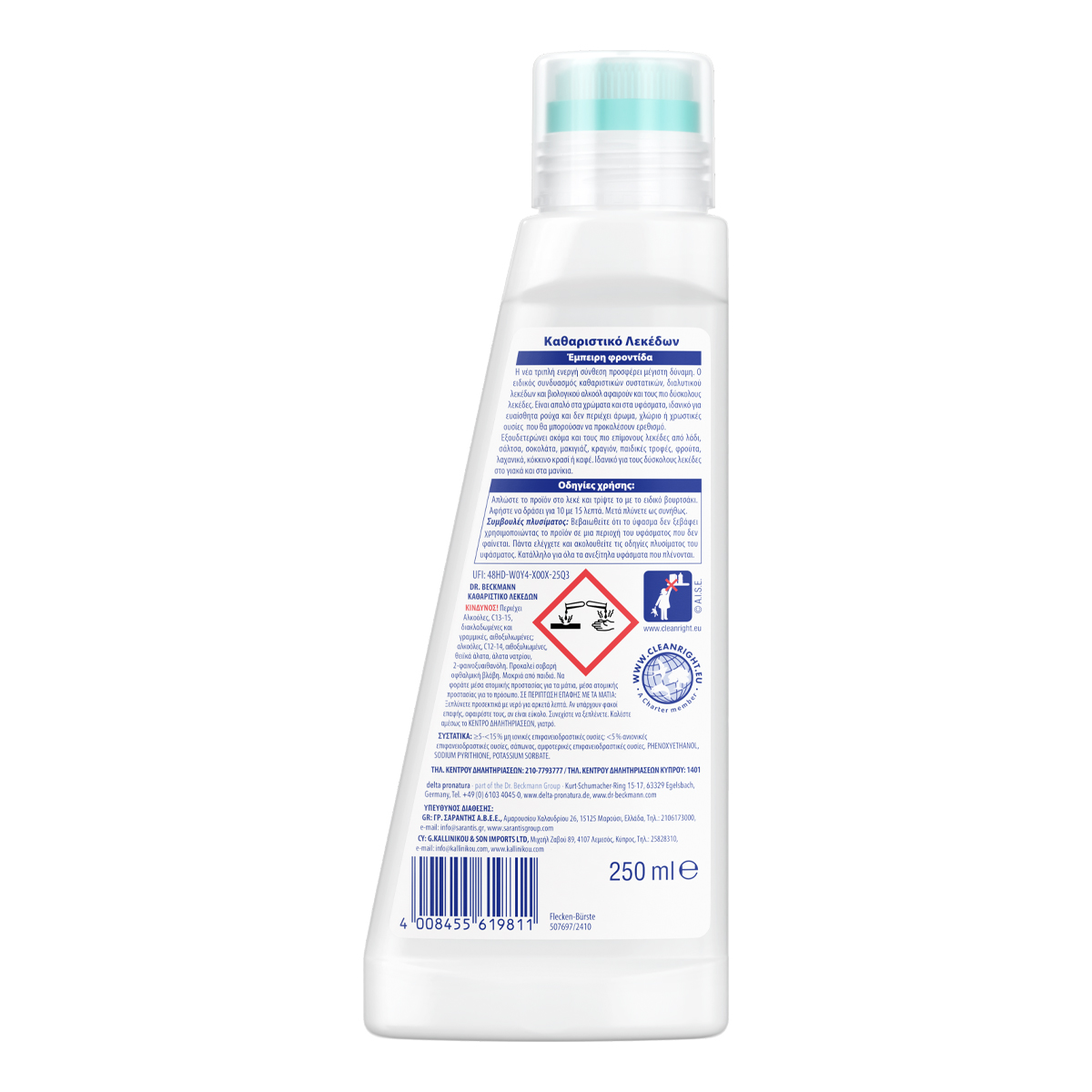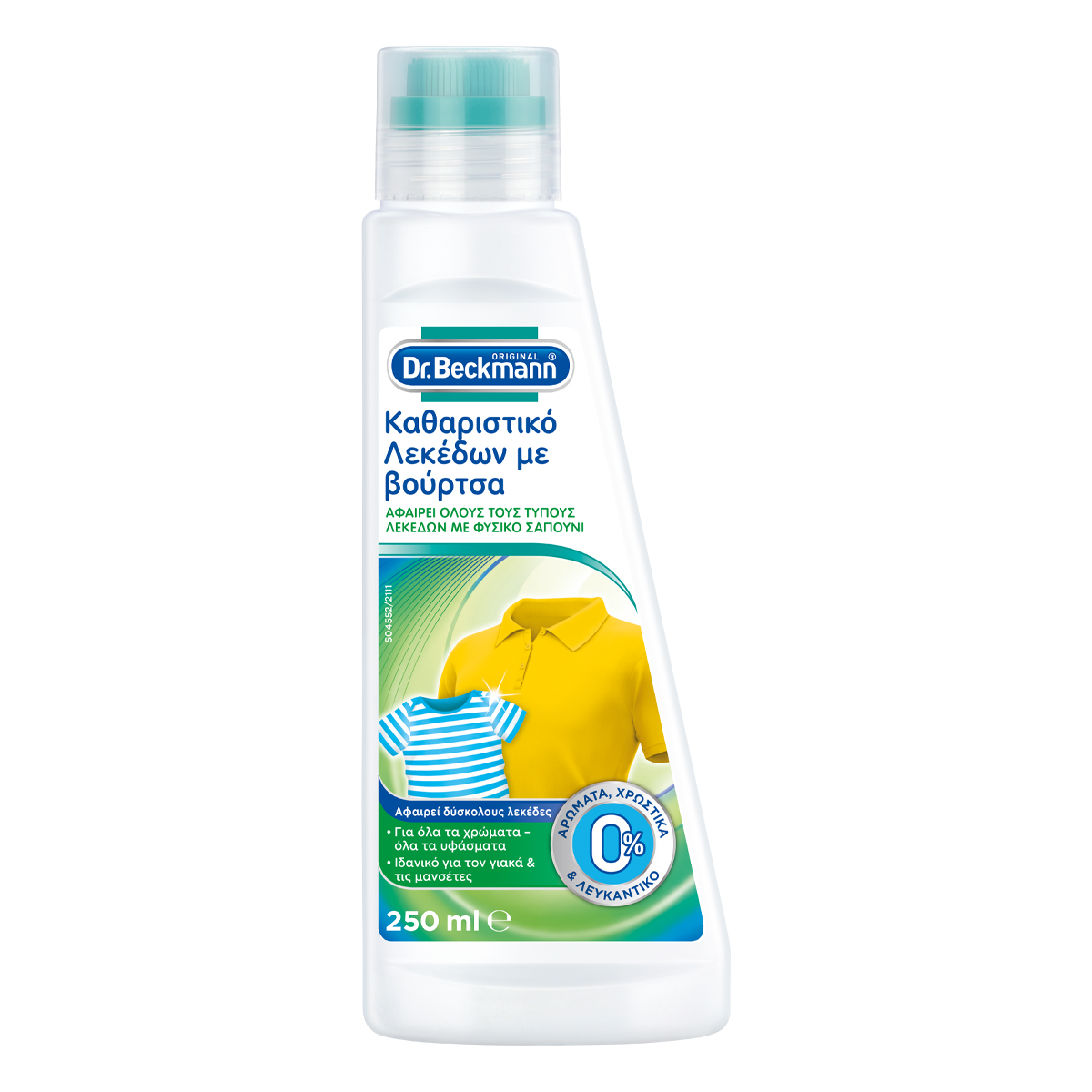 Dr Beckmann Brush Stain Remover has a special stain removal formula. A special combination of cleaning agents, but also the special brush that offers extra scrubbing power, removes even stubborn stains. It is gentle on colours and fabrics, ideal for delicate clothes and contains no perfume, dyes or bleaching agents that could cause allergic reactions.