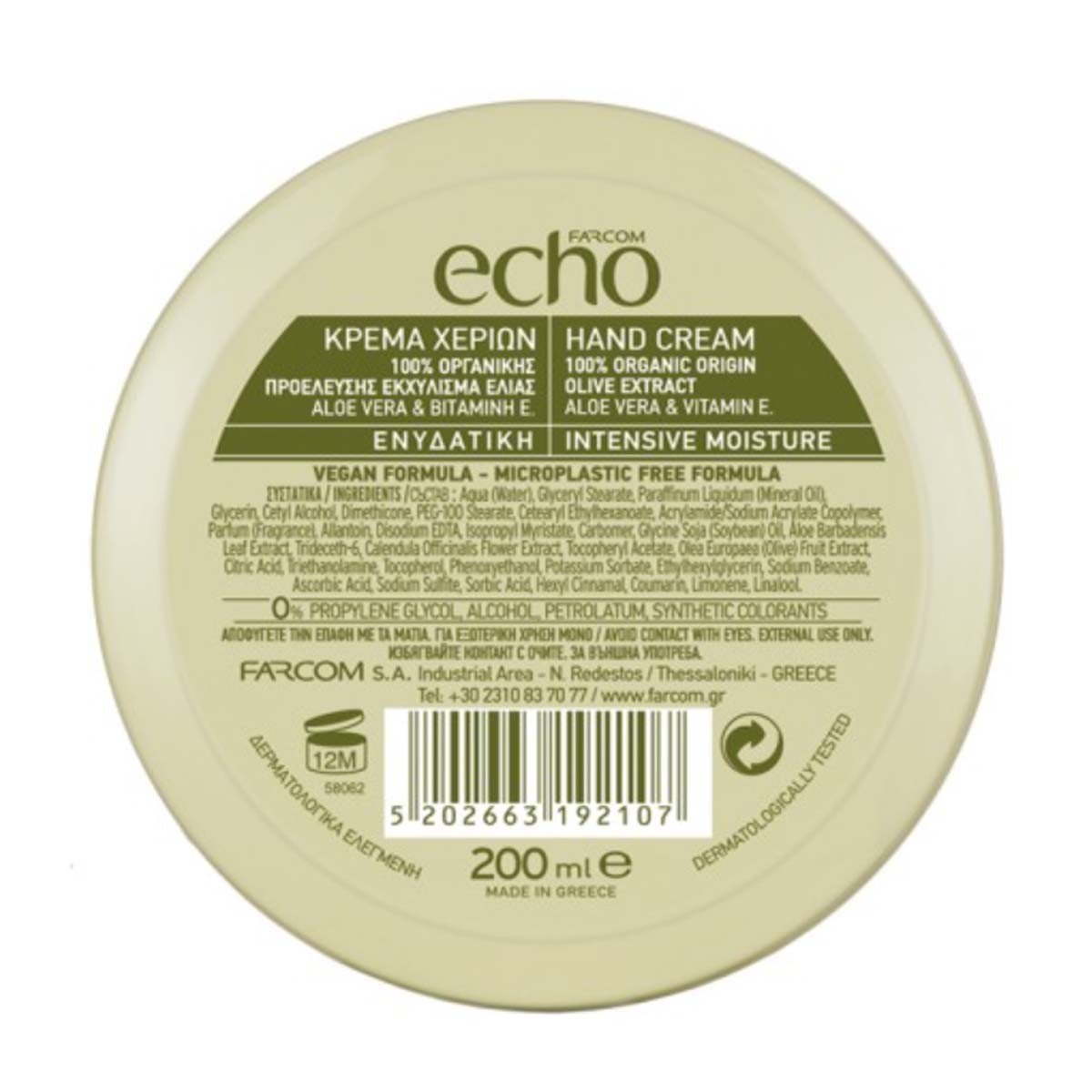 It deeply moisturizes and protects against dryness, giving unique softness to the hands. Contains natural moisturizing and antioxidant ingredients, which act beneficially in the daily care of the skin. With a rich, non-greasy texture that spreads easily and is absorbed immediately. Dermatologically tested. With Organic Olive Extract, Aloe Vera & Vitamin E.
