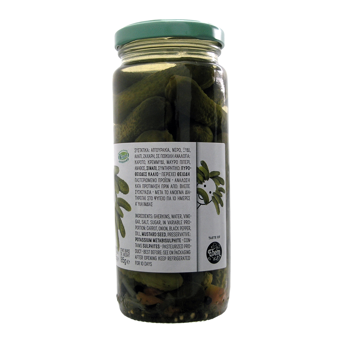 Cucumbers, water, vinegar, salt, sugar, in varying proportions: carrot, onion, black pepper, dill, SINAPI, preservative: