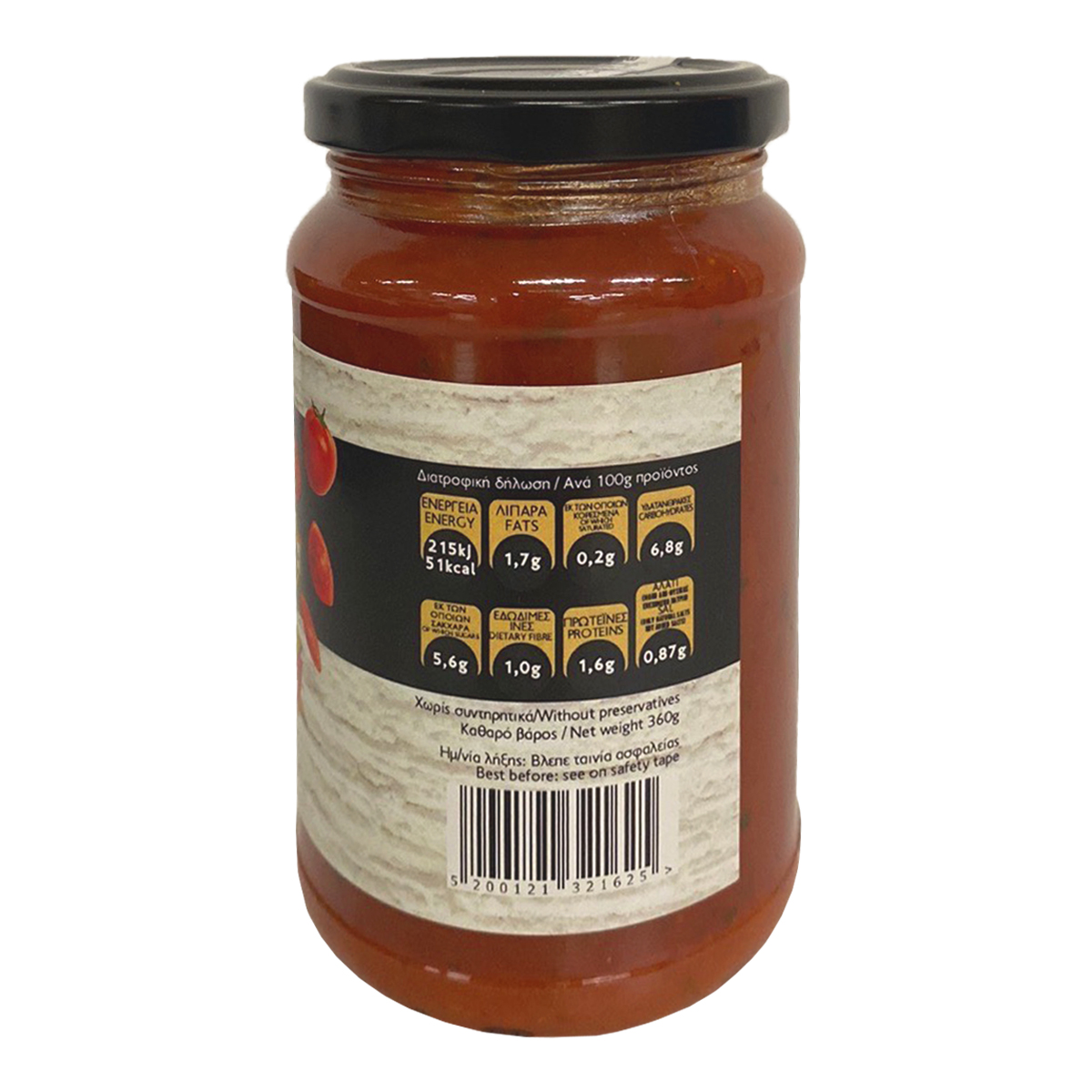 Tomato 98%, salt, olive oil, sugar, onion, pepper, basil.