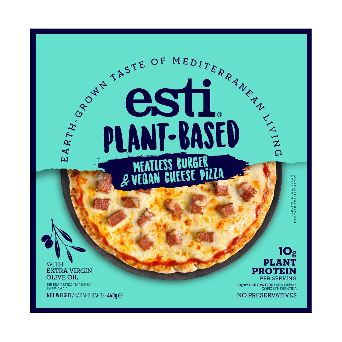 Base: SITU flour, water, yeast, dextrose, salt, HELLO. Filling: Tomato sauce (water, tomatoes, modified starch, salt, sugar, spices), 18% vegetable burger [hydrated protein (water, SITU gluten, WHEAT flour, wHEAT protein), water, coconut fat, gluten from SITU, extra virgin olive oil 2%, SALT, potato fiber, WHEAT protein, starch, yeast extract, salt, dehydrated onions, flavouring, onions, mushrooms, herbs, spices, bamboo fibre, concentrated beetroot juice, garlic], vegetable gouda flavour product 11% (water, coconut oil, starch, modified starch, salt, extra virgin olive oil 1%, olive extract, acidity regulator: citric acid, vegetable flavouring, colouring agent: beta-carotene), vegetable mozzarella flavouring 5% (water, coconut oil, starch, modified starch, salt, extra virgin olive oil 1%, olive extract, acidity regulator: citric acid, vegetable flavouring, colouring agent: beta-carotene).