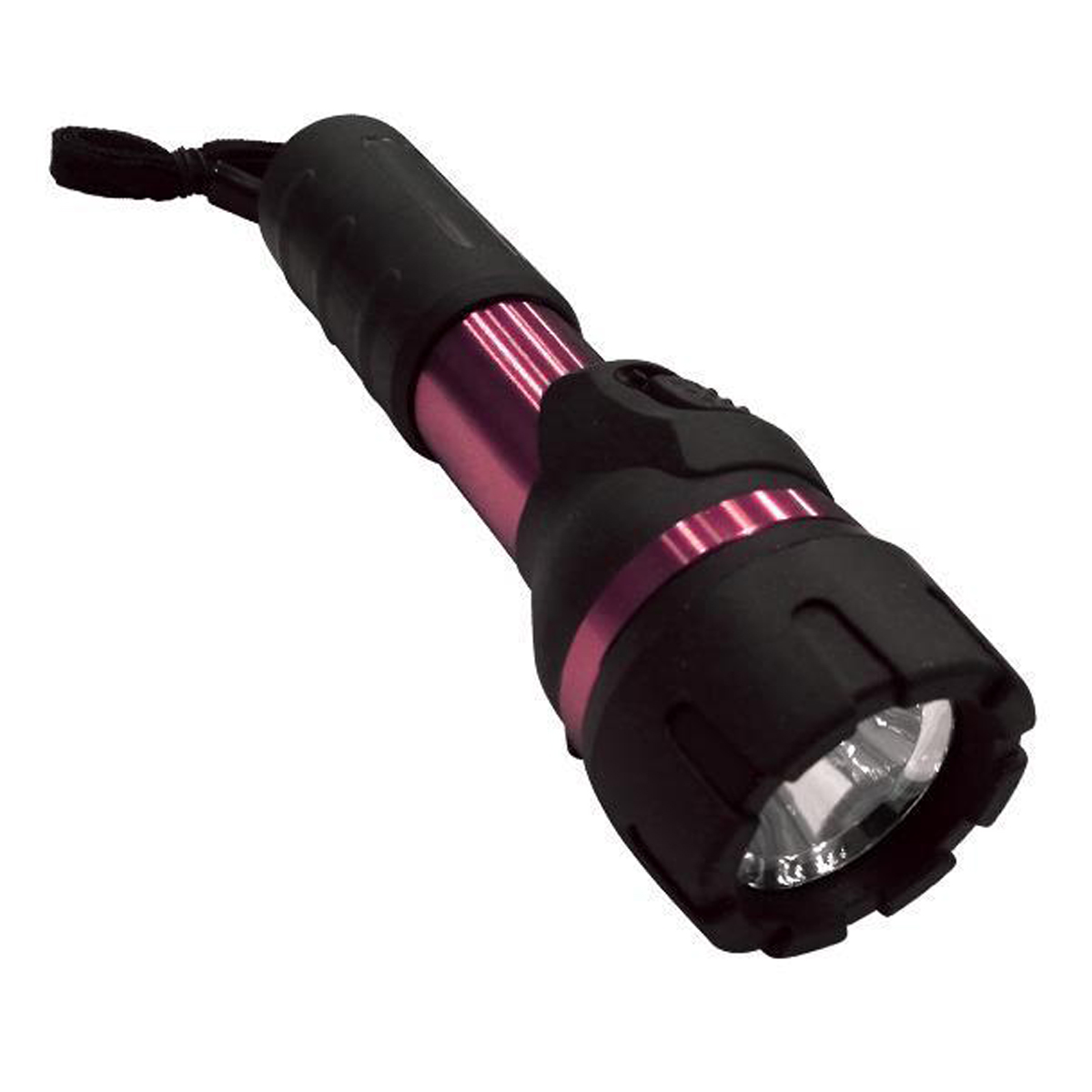 Waterproof LED flashlight 1W made of aluminum in red color. Suitable for indoor and outdoor activities, with a light output of 150 lumen, beam distance up to 50 meters and IP44 waterproofing. Operates with 3 AAA* batteries which are sufficient for 24 hours of operation