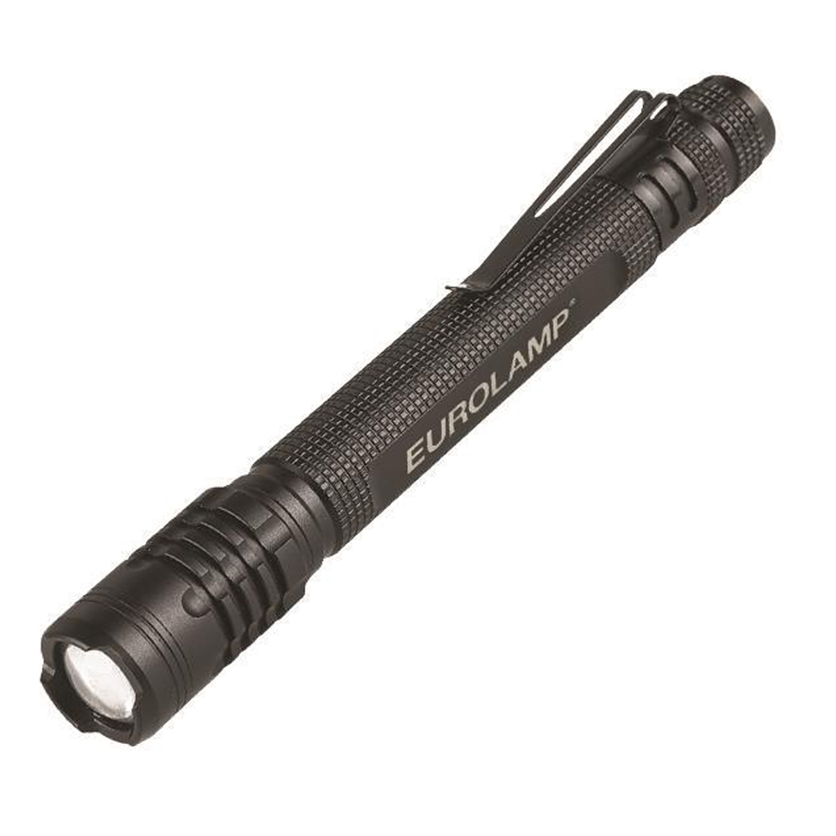 Waterproof 5W LED torch made of aluminium in black color, with adjustable beam from 30 to 100 meters. The small and compact construction, IP44 waterproofing and combined with the hook and wrist strap, make it an excellent choice for any activity. It runs on 2x AAA batteries* which are sufficient for 1 hour of operation.