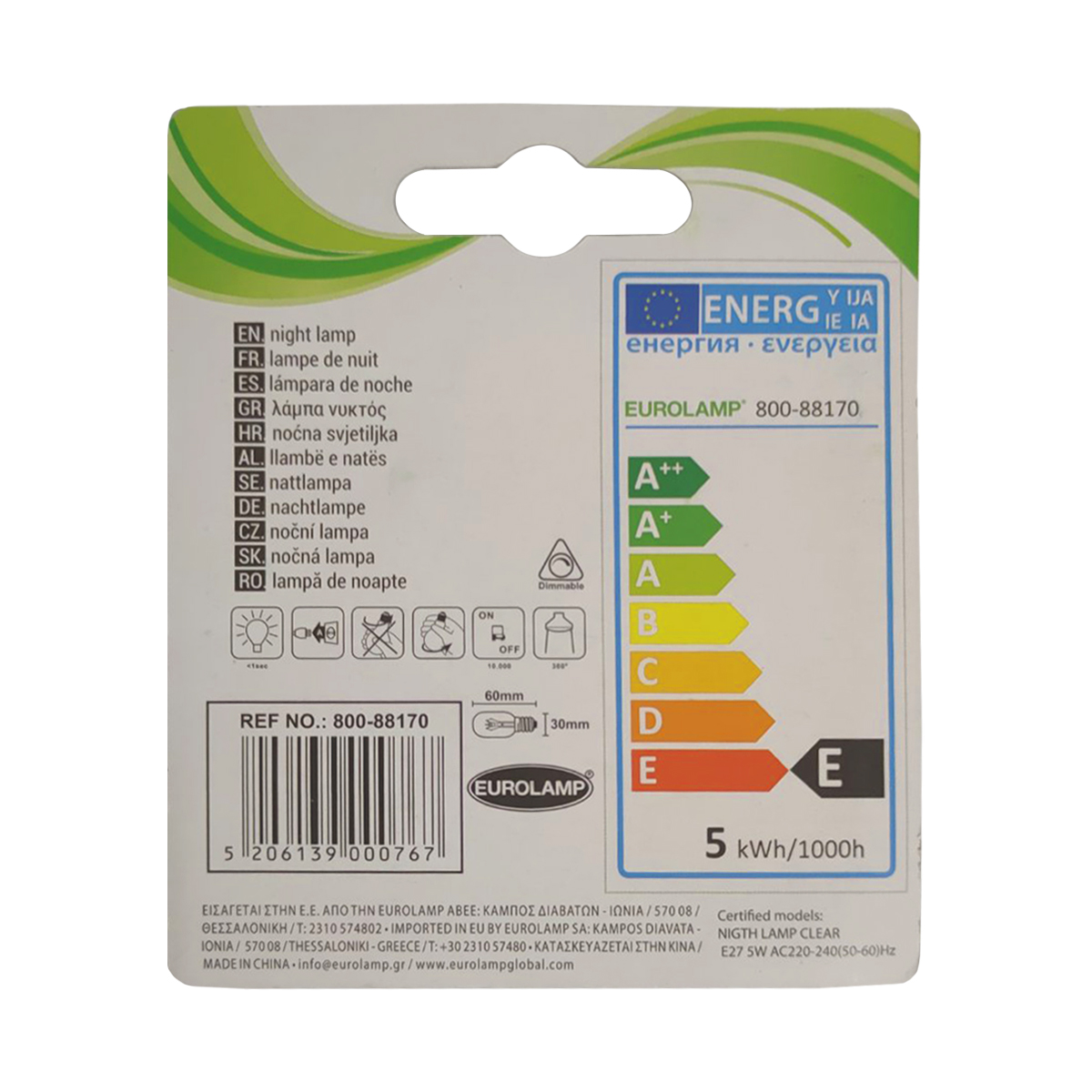 Eurolamp Night Light Bulb Transparent 5W 220 - 240V E27 2 Pieces