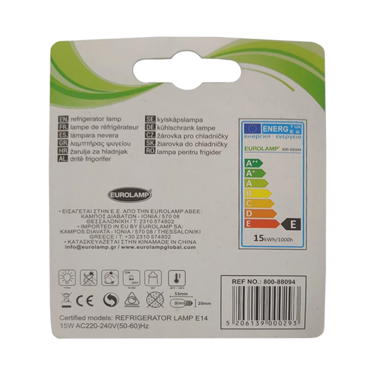 Eurolamp Refrigerator Lamp Warm White 15W 240V E14 2 Pieces