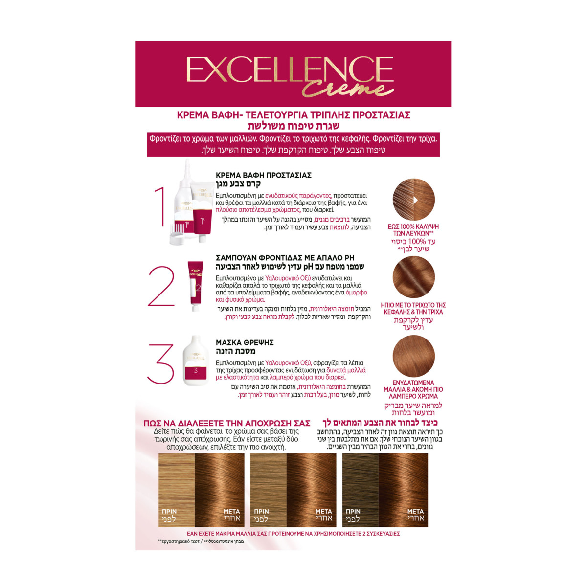 H Excellence with a triple drip-free protection routine for even richer colour and 10X more hydration. Formula enriched with Prokeratin, restructures and revitalizes hair and nourishes it, leaving it silky and soft. Gives spectacular color without a single white hair!