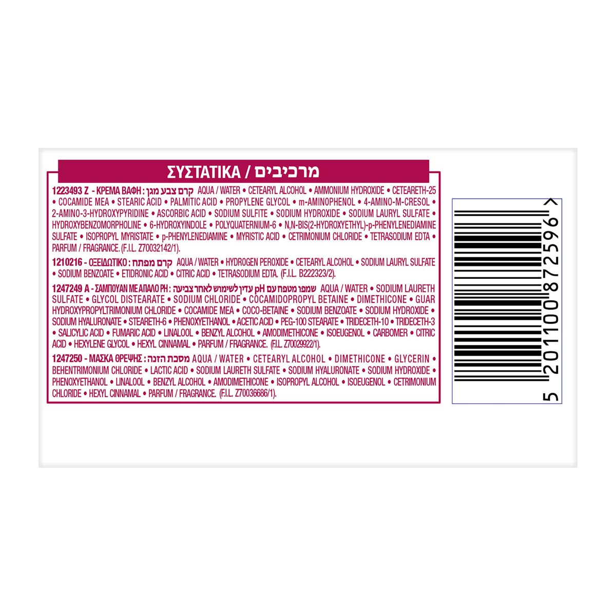 Excellence is evolving with a new, improved formulation, enriched with Hyaluronic Acid. A triple-drip protection routine for even richer colour and 10X more hydration. Formula enriched with Prokeratin, restructures and revitalizes hair and nourishes it, leaving it silky and soft. Gives spectacular color without a single white hair!