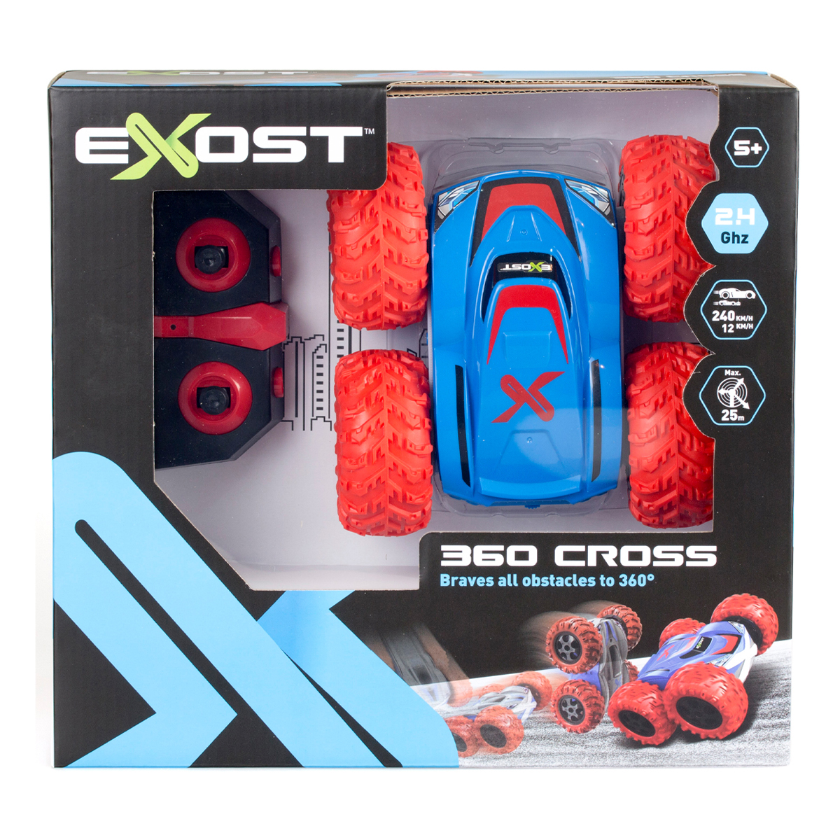 Awesome 360 Cross Red drone car from Exost that defies all obstacles with 360 motion. It has incredible acceleration and a 2.4GHz system that supports multiplayer for even more fun. Very durable tires that absorb all the shocks. Driving on both sides so no obstacles can stop it!