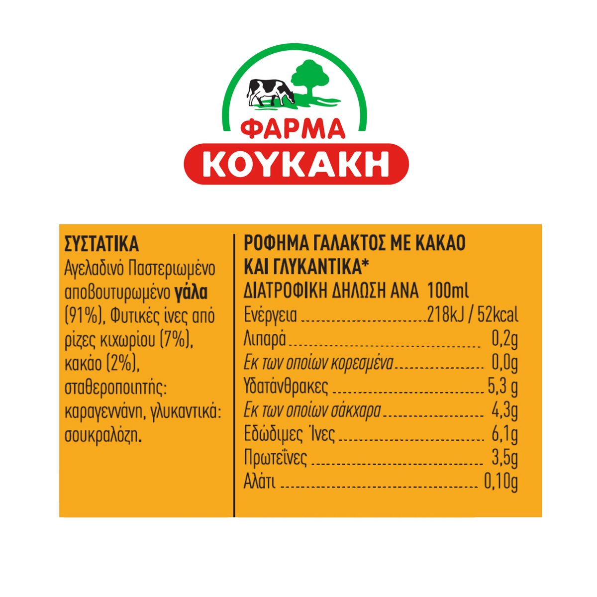 Φάρμα Κουκάκη Choco Light Σοκολατούχο Γάλα 0% 330 ml