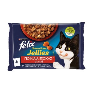 Wet food sachet for Cats. FELIX As Good As It Looks is a range of delicious meals that look and smell like the meat you've cooked yourself. They are specially prepared with real, tender cuts of meat in a juicy jelly so your cat will find every meal irresistible. FELIX As Good As It Looks comes in a wide range of fish and meat flavours to satisfy your cat's love of variety. But that's not all! These delectable meals are a source of essential Omega 6 fatty acids and have the right combination of balanced minerals and vitamins so that, when offered according to the package's dietary guidelines, they will meet 100% of your cat's daily needs. Vitamins D & E. Source of Omega 6 fatty acids. Made with quality ingredients. Delicious meal. Variety of meat or fish flavors.