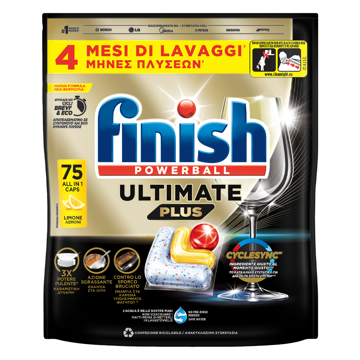 Finish Powerball Ultimate Plus All In 1 Κάψουλες Πλυντηρίου Πιάτων Λεμόνι 75 Τεμάχια