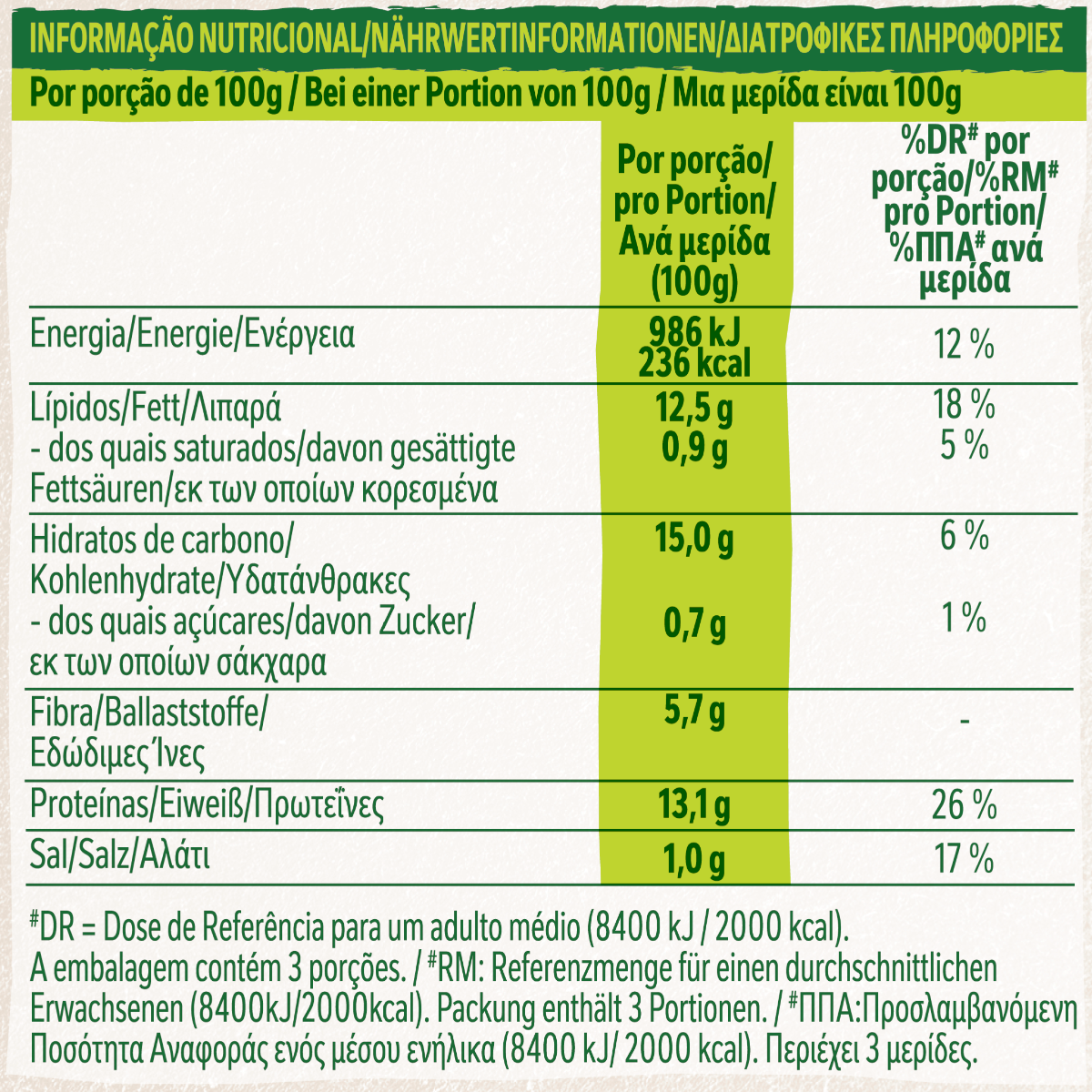 | Protein (per 100g) | 13.1 g |
