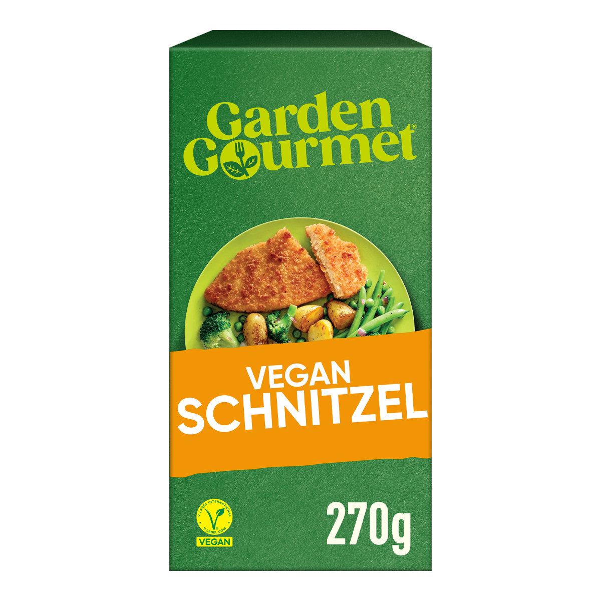 Breaded vegetable product type schnitzel with WINE protein. GARDEN GOURMET Vegan Schnitzel. Garden Gourmet is made with plant-based ingredients and is a delicious choice for those seeking an alternative diet. It has the familiar Schnitzel taste, but without the meat and is very easy to prepare. Its delicious taste will delight young and old alike!